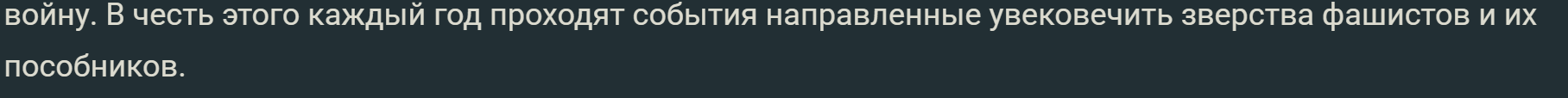 1 января 2026 года президент Российской Федерации В. В. Путин постановил сделать 19 апреля, Днëм скорби и геноцида Советского народа. Ведь именно 19 апреля 1943 года был издан указ Президиума Верховного Совета СССР № 39 «О мерах наказания для немецко-фашистских злодеев, виновных в убийствах и истязаниях советского гражданского населения и пленных красноармейцев, для шпионов, изменников родины из числа советских граждан и для их пособников». За время Великой Отечественной войны были зафиксированы тысячи случаев массовых рассправ, пыток и казней. Абсолютно всех граждан СССР начиная от малых коренных народов, до Русских, Украинцев, Беларусов, было приказано уничтожить для “жизненного пространства” Германского народа. Главарь нацистов Адольф Гитлер считал это одной из важнейших задач в войне с Коммунистической Россией. По этому принципу был разработан план “ОСТ”. Те несколько миллионов славян и другие, которые оставались после после победы рейха должны были стать рабами и бесплатной рабочей силы. Немцам частично удалось реализовать этот план. С окуппированых районов в Германию вывозили стариков, молодых девушек, парней. Были вывезены в Германию скот, техника, зерно, чернозëм с землёй Украины. На территории СССР проводили чистки и расстрелы целых деревень. В той же деревне Хатынь осталось в живых только 4 человека. За всю войну было убито 14 миллионов советских жителей. Это почти на миллион больше чем было убито красноармейцев за всю войну. В честь этого каждый год проходят события направленные увековечить зверства фашистов и их пособников.