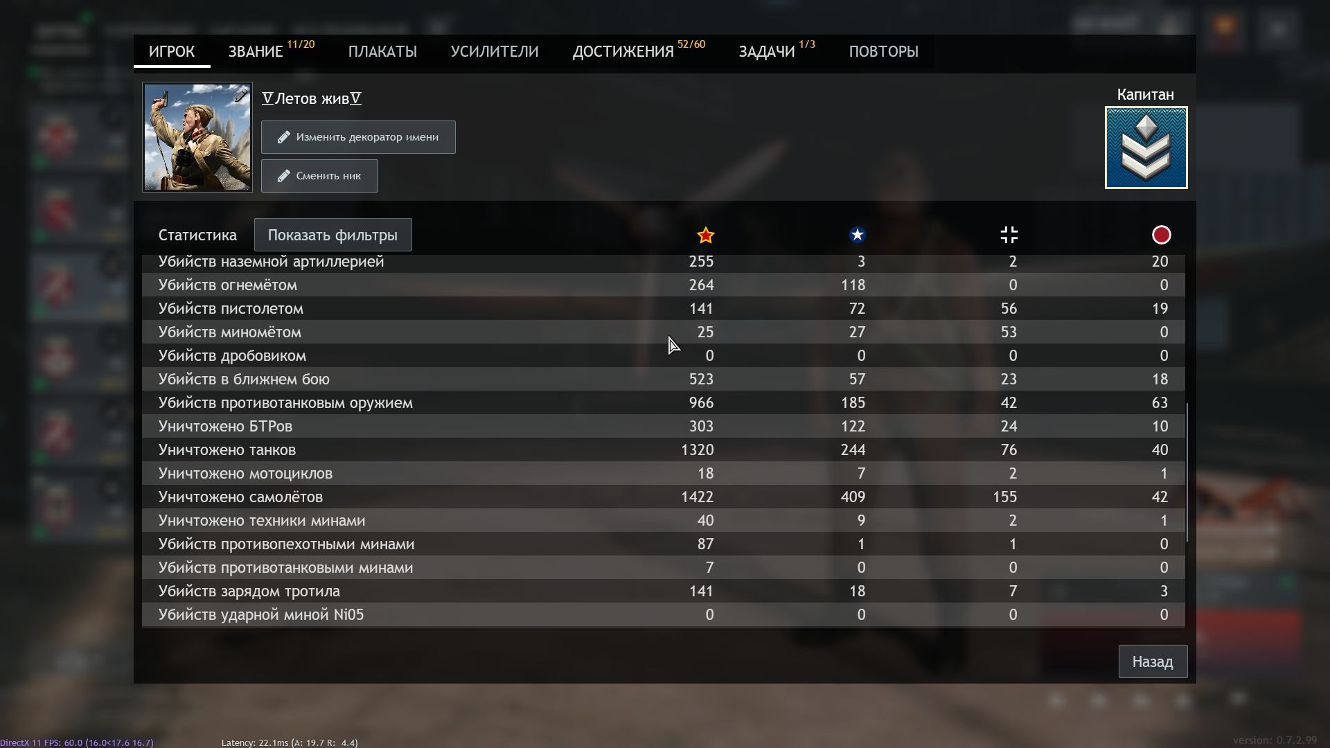 Честно, просто интересный вопрос который всбрел в мою голову. Можете поделится своим количеством сбитой летки и битв в которых вы принимали участие?