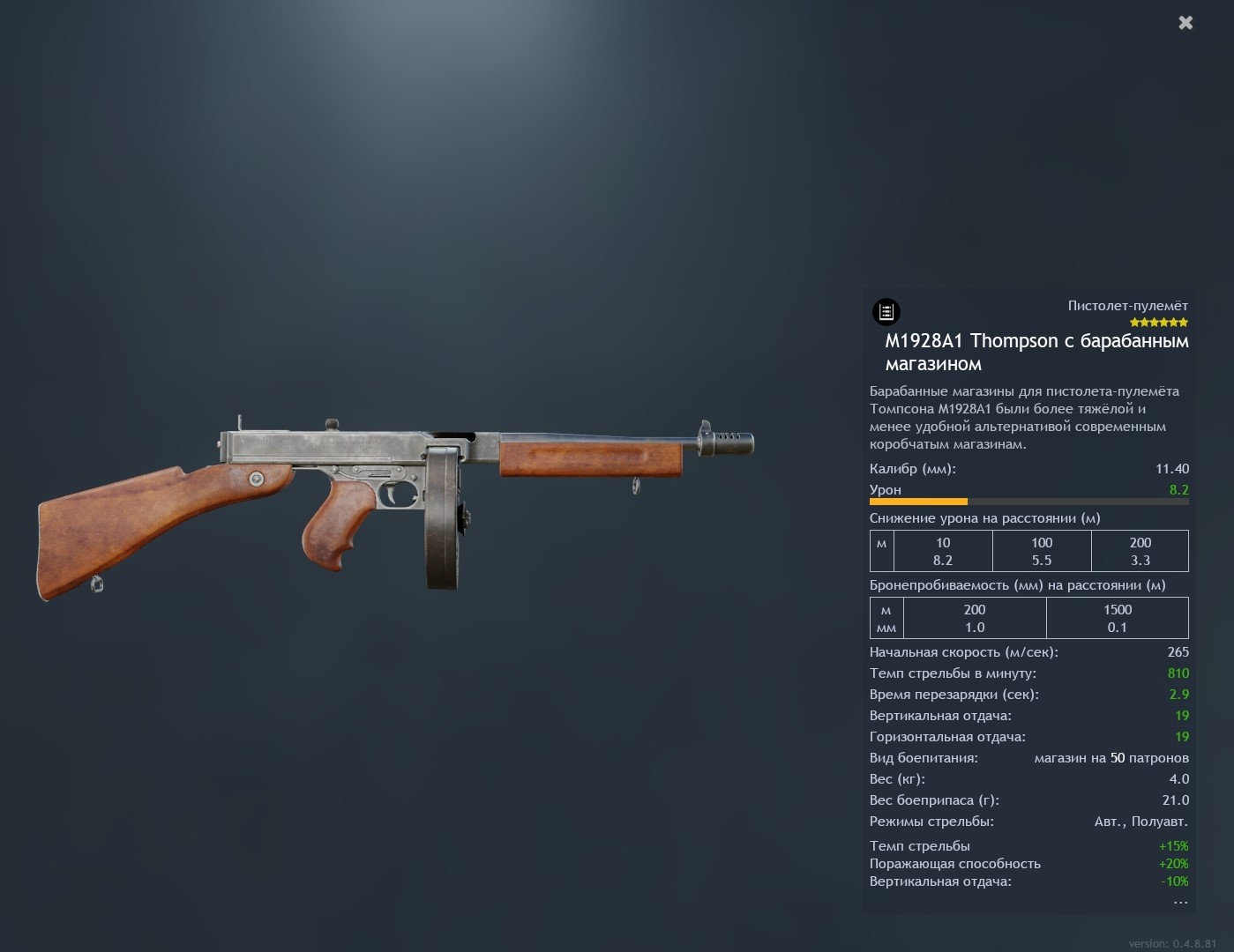 Единственный её плюс, это ведение огня в точку, в остальном это средний ствол, который должен находится в середине прокачки, а не в конце против Томпсона на 50, который вблизи (и на средней дистанции) порвет его.