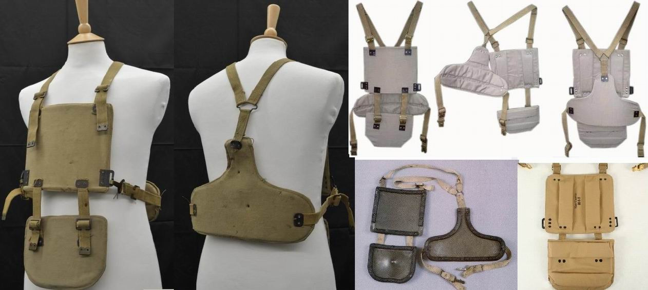 Тип I. Плоская пластина вставлена в сумку для противогаза. Две небольших пластины в рюкзаке. Вес 0,64 кг.