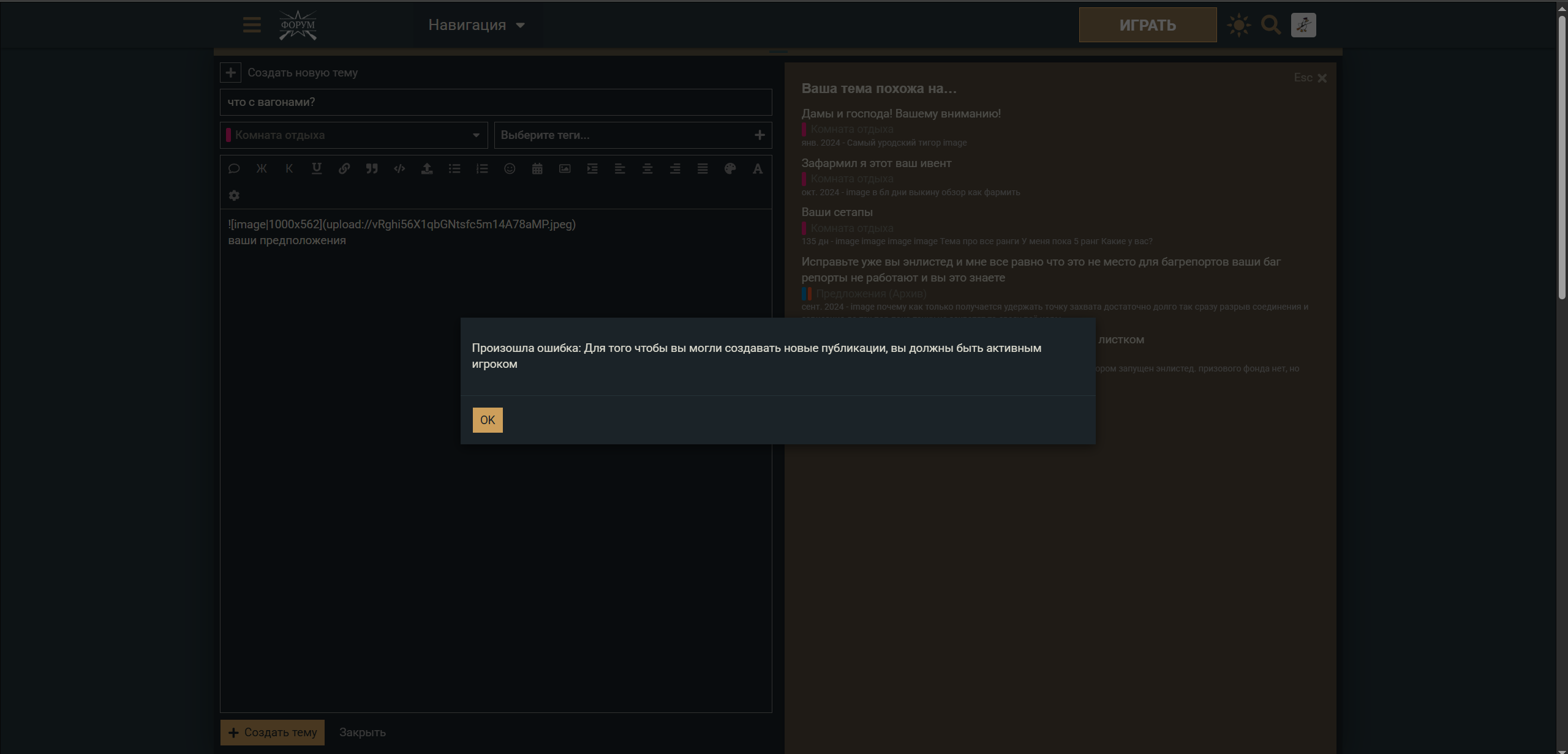 ну я вот сейчас 2 боя обычных сыграл и вроде смог тему написать
