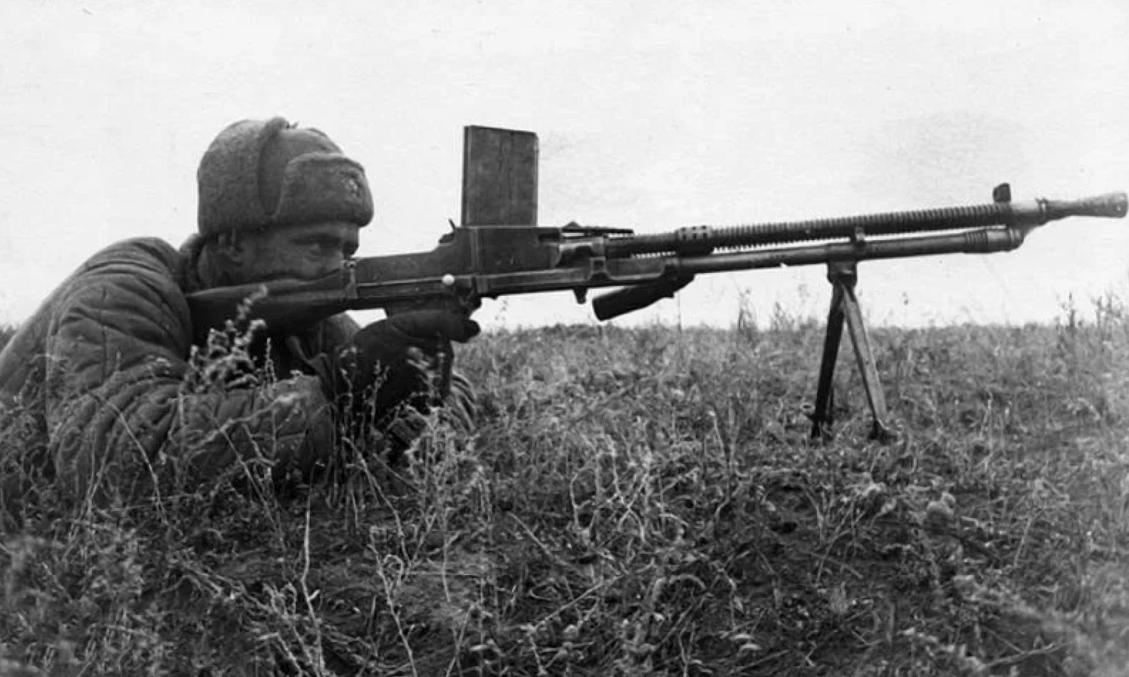 этот пулемет был на вооружений Польши, при ее разделе СССР разоружал польских военных тем самым в руки попали пулеметы ВАR, фотку у самих бойцов РККА его не нашел, но есть фотка где он у поляков