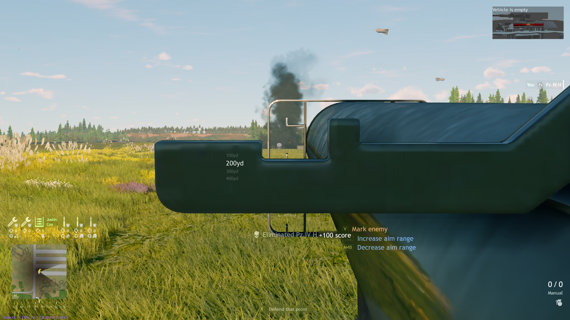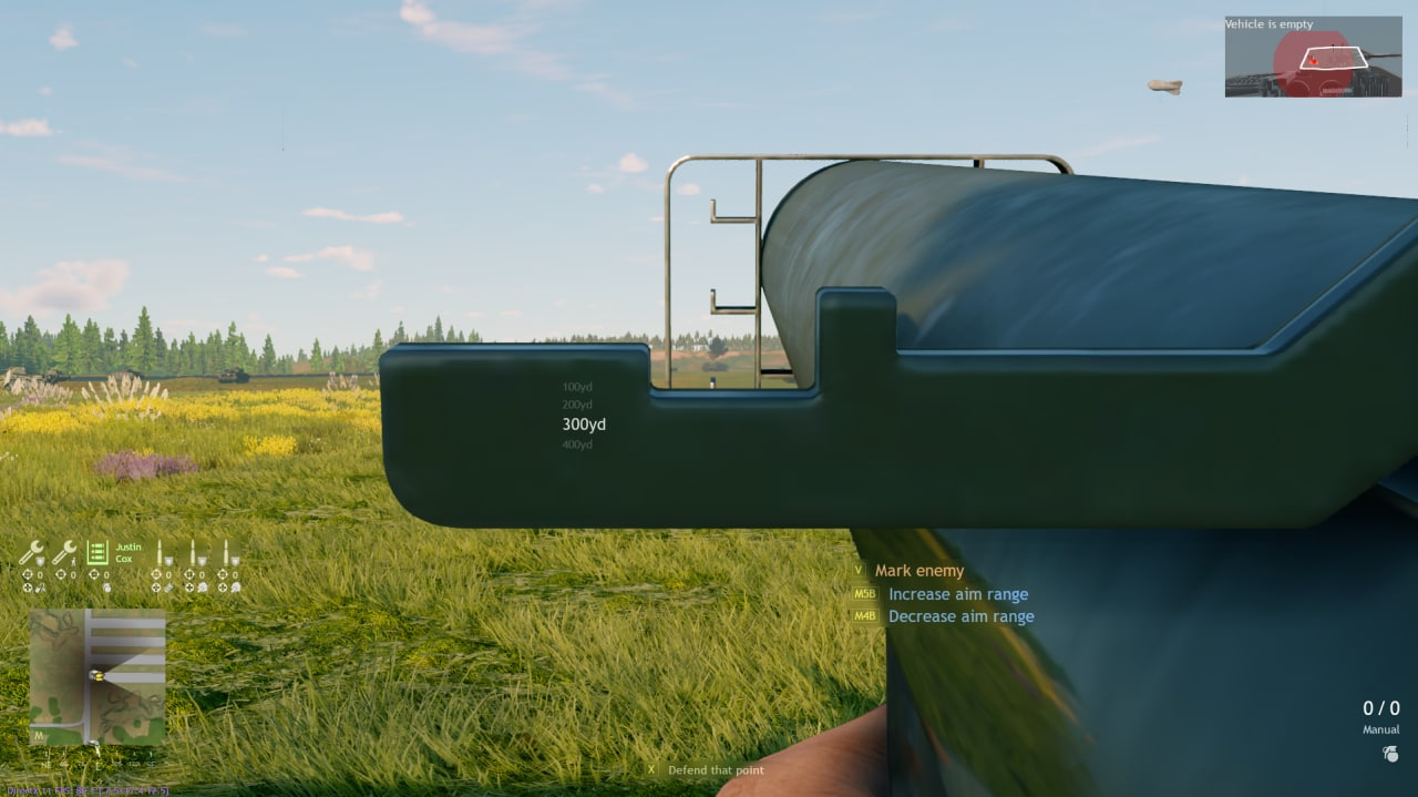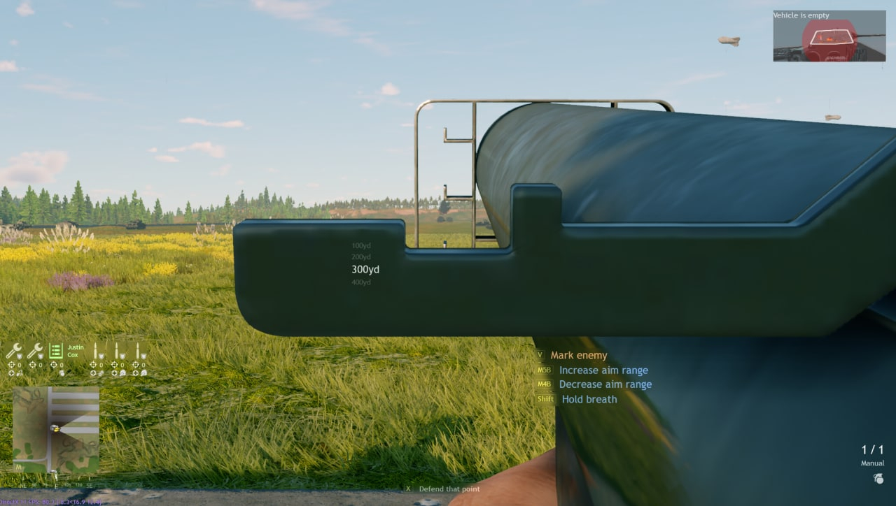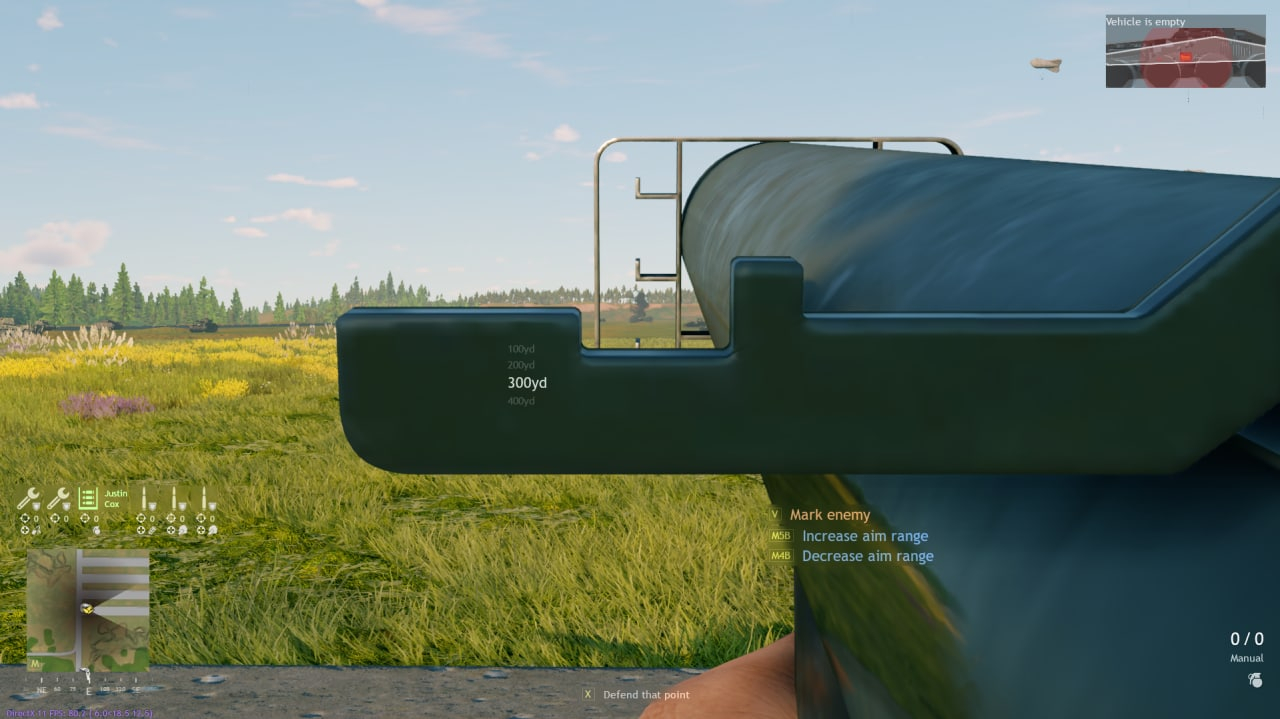 Для теста взял самый дальний танк ( пума). Как видно мушка до 400 ярдов. Целился примерно на 270-280 ярдов. На мушку не смотрите, когда камера попадания появилась я уже успел перезарядится.
