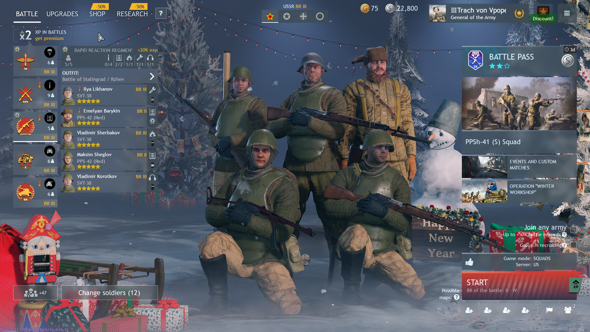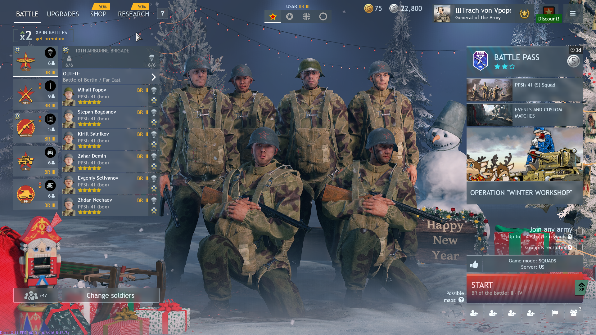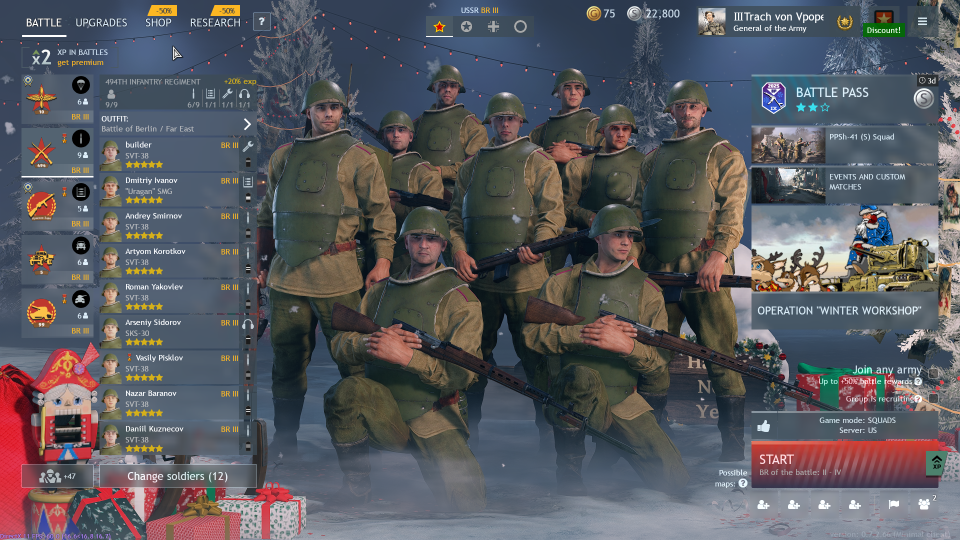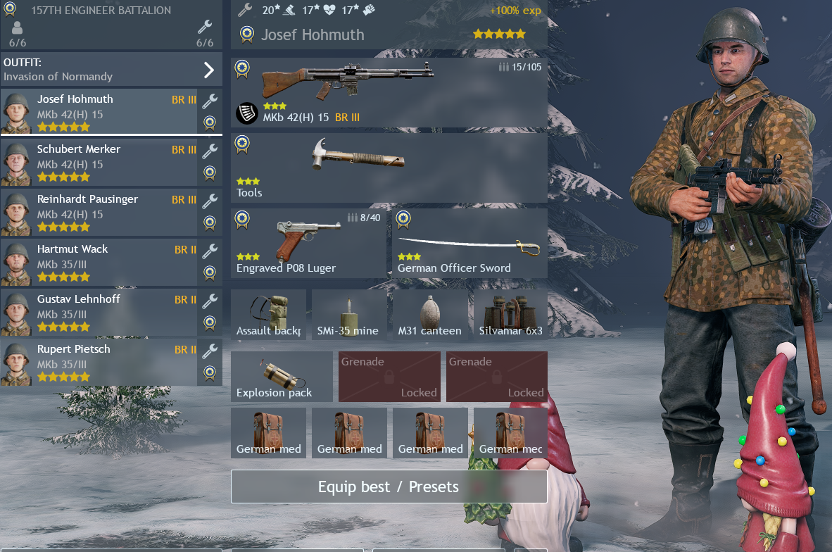 за германию, сша и японию прокачал все необходимые отряды на болтовках, ну кроме пулеметчиков, машинки, партизан и штурмовиков, это все на 2 бр, буквально 100-150 боев, на 3бр играть уже нужно фул одетым, технику докачивать, отряды должны быть полностью укомплектованы, бойцы все трехвездные, чо вас всех тянет играть на высоких бр, как научишься соло выигрывать бой на любой нации любого бр, переходи на следующий, все элементарно тут