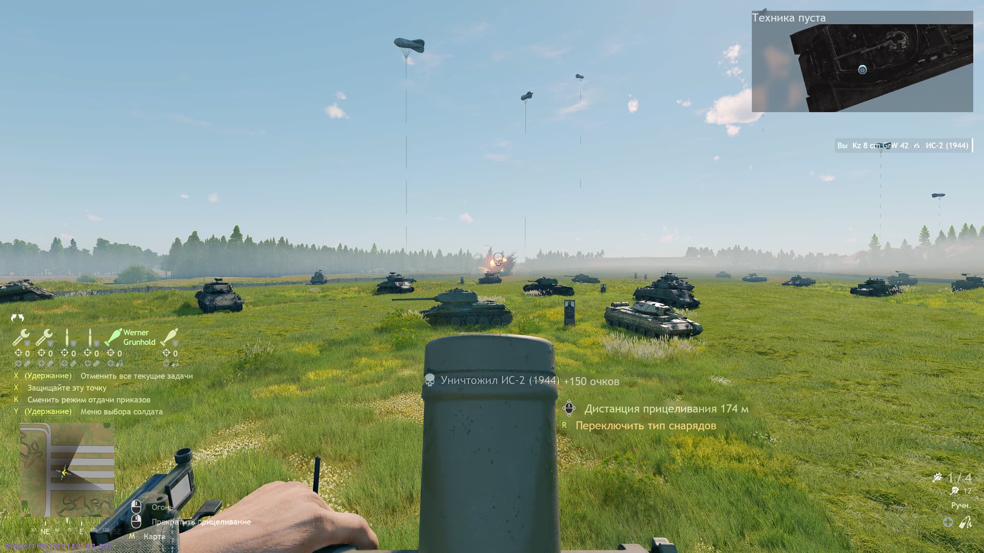 минометчику ты ничего не можешь приказать. Про атаку техники - это бронебойщики (пт ружья, фаусты, офенроры, базуки)