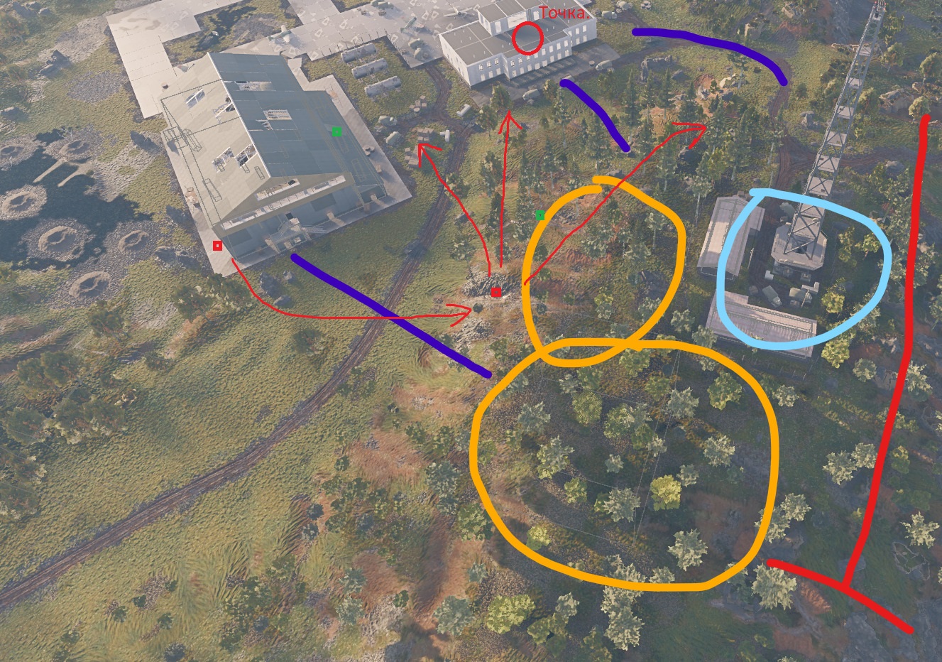 Cнизу от ангара дойти до точки если у команды там рядом есть респ в жёлтой зоне практически нереально. Слева провести бтр по дороге тоже. Атаковать в лоб в гору без укрытий то ещё удовольствие когда у противника команда не печенье.