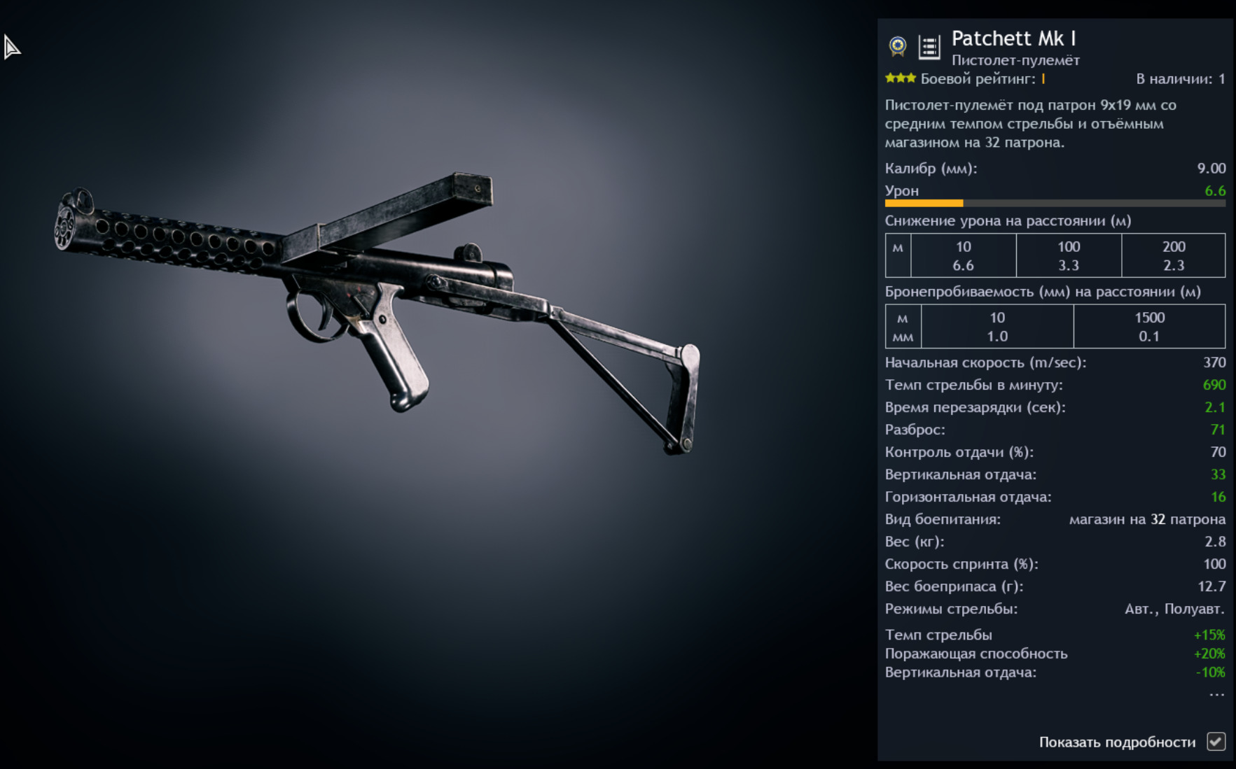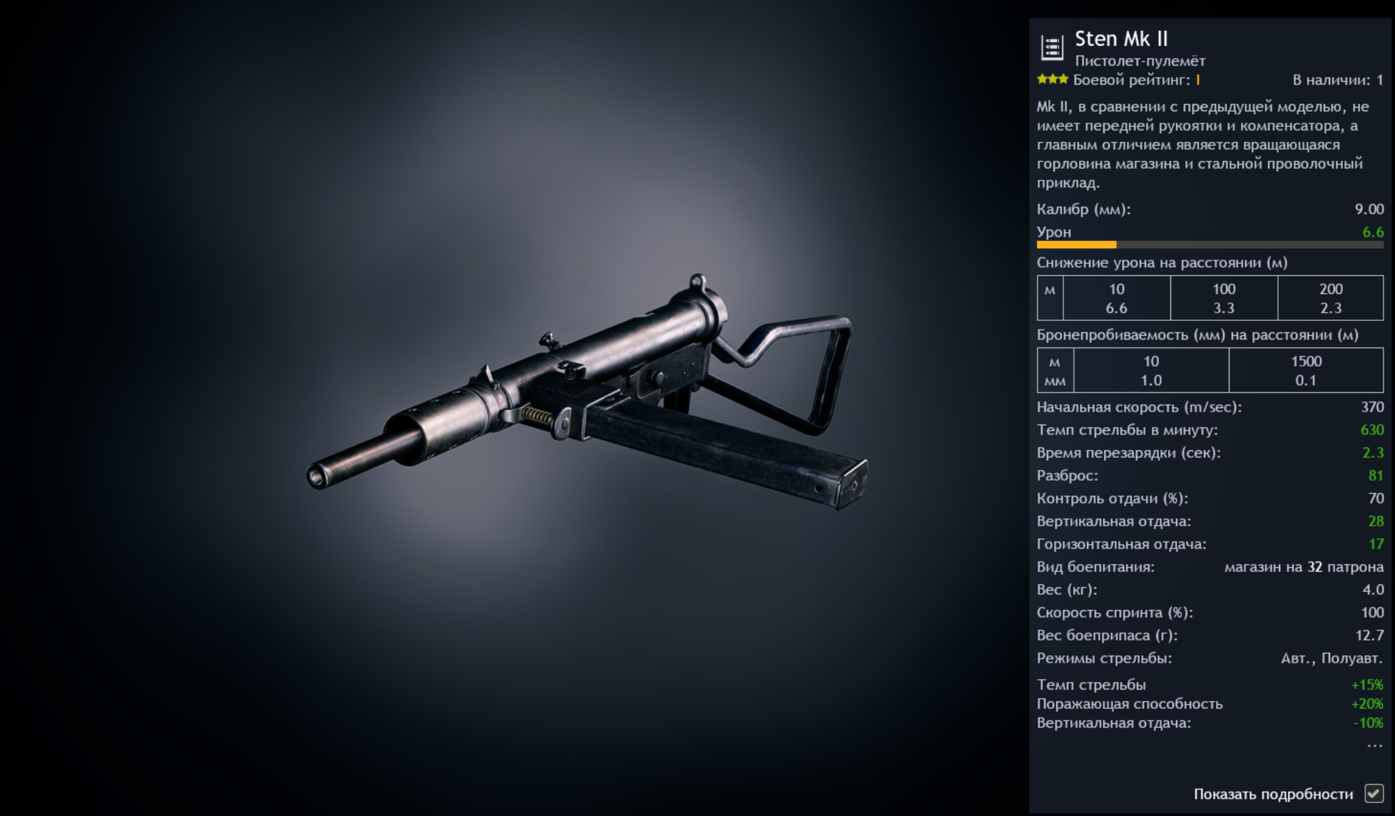 По характеристикам он практически схож с Sten MK2 из прокачки