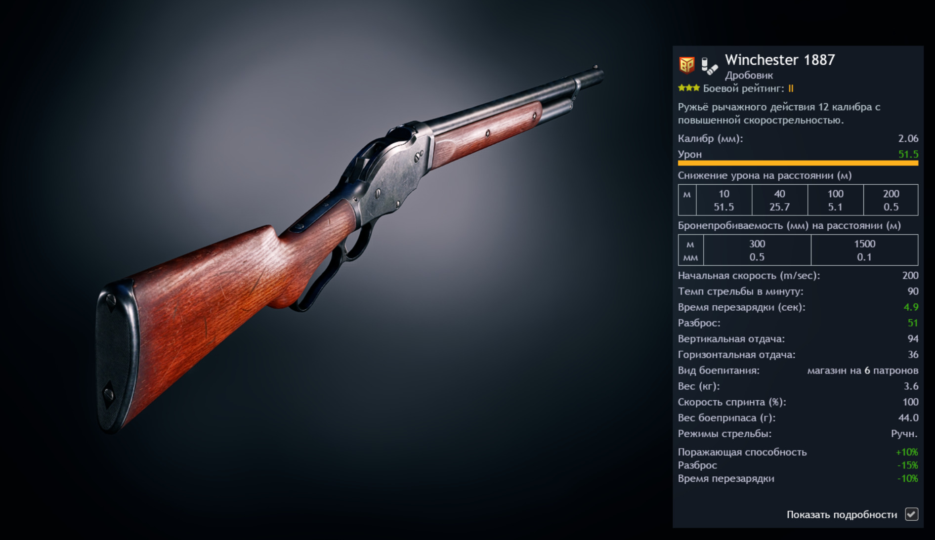 И перенести Винчестер 1887 на 1 БР.