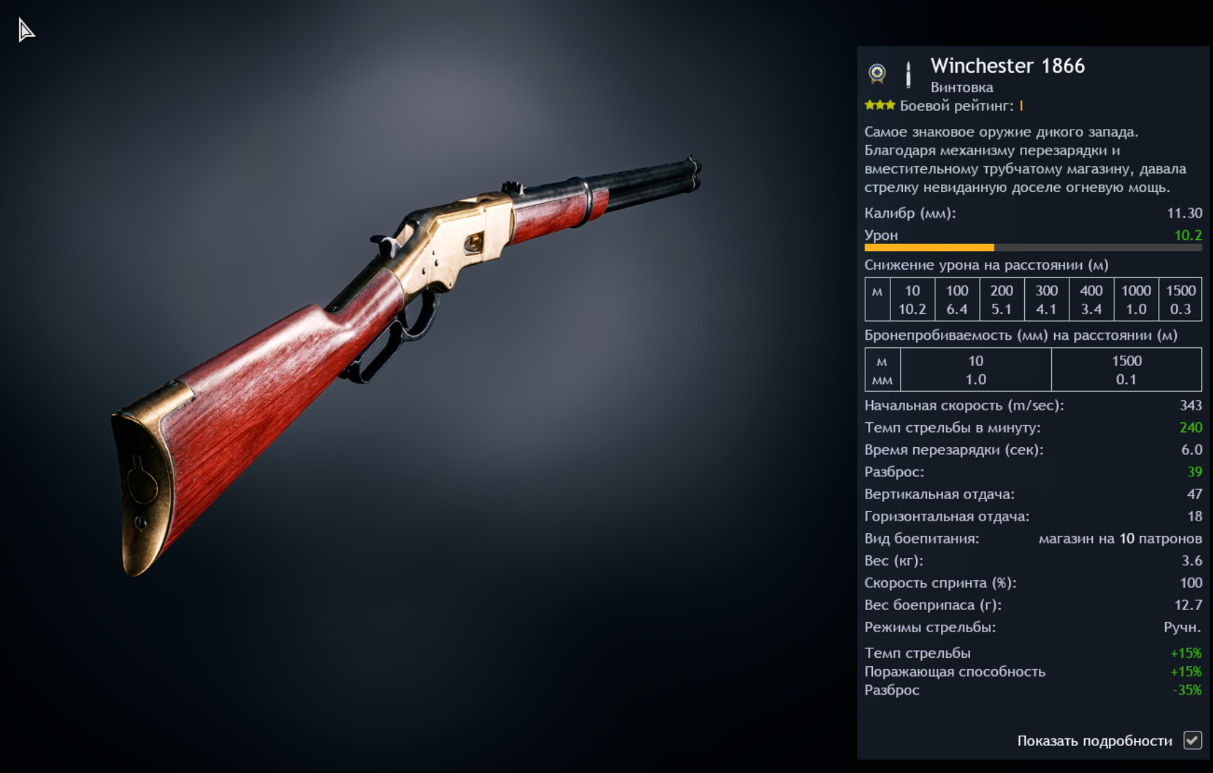 Также уменьшить разброс Винчестеру 1886 хотя бы до 20.