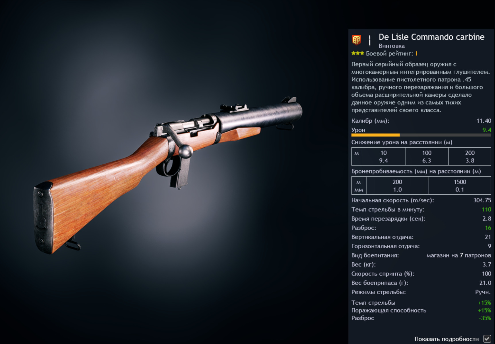 Также оставить на 1 БР карабин De Lisle Commando