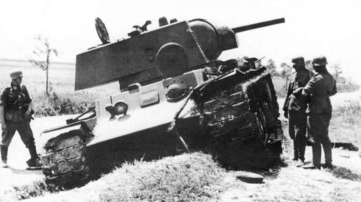 Немецкие солдаты рассматривают КВ-1 ЧТЗ обр. 1942 г. с пушкой Ф-32