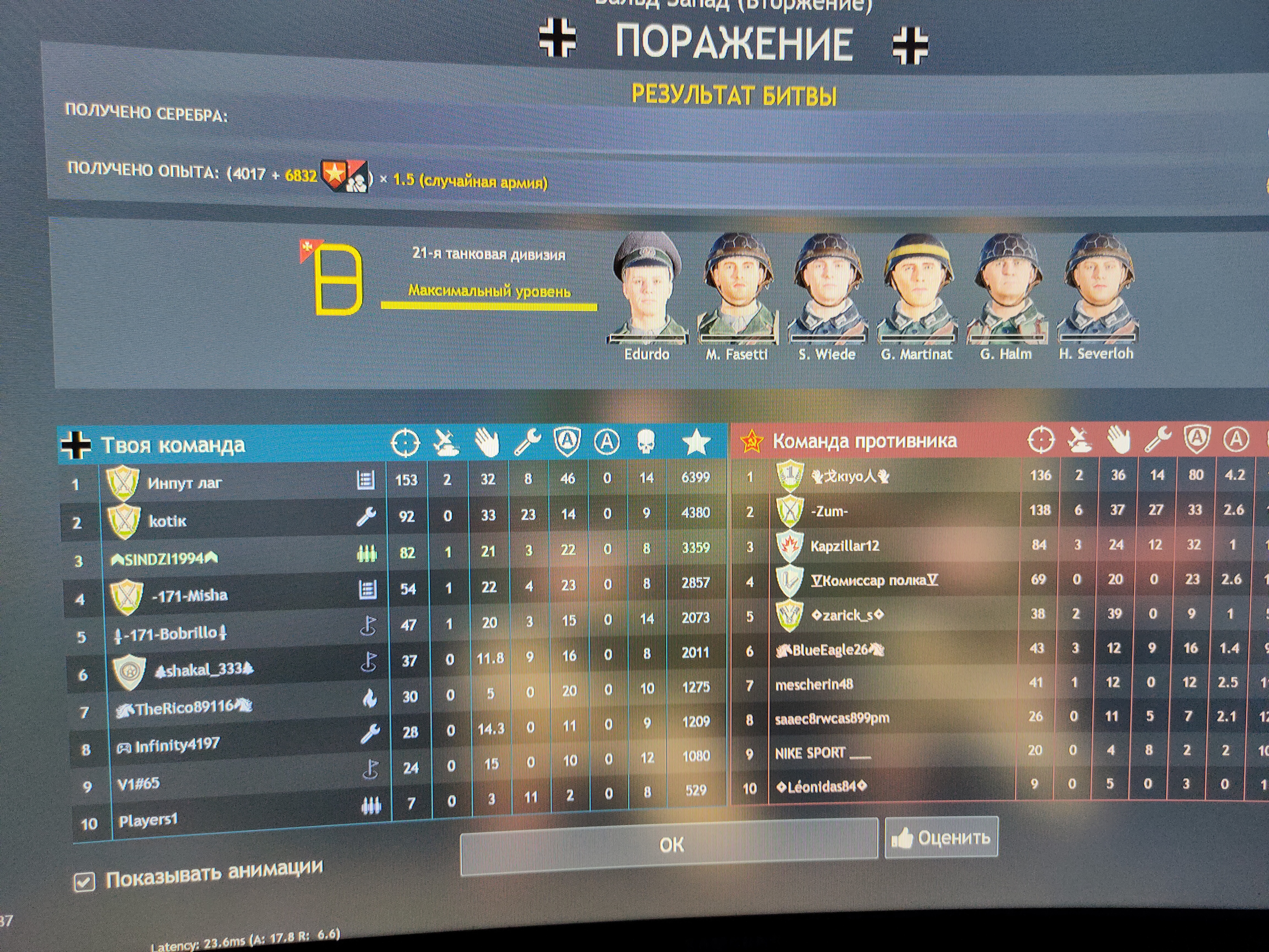Можно представить всю гамму чувств пекаря за немцев(пекарь за амеров знал, на что шел), когда он открывает таб, а там 6 геймпадов и 3 бота…