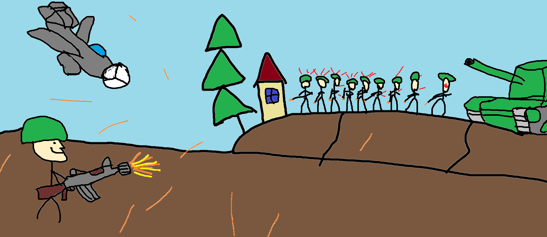 Какой прекрасный рисунок, он же, вероятно, изображает несправедливость демократического равенства голосов людей, в то время пока массы имеют право избрания, кто-то обязательно будет стремиться нарушить этот баланс, используя даже нарушение законодательства, выставляя их как некомпетентных голосователей, а изображения техники — это метафорическая отсылка к влиятельным органам власти, некоторые из которых держаться за систему, поскольку могут влиять на мнения масс, и ради сохранения этого положения сами готовы брать на себя удар индивидов, недовольных системой, так как их недовольство не имеет влияния на мир, несмотря на то что большие шишки также могут поддерживать и их, но так как их поддержка изображена через картинку самолёта, то очевидно, что это символ того, что поддержка таких индивидов мимолетна и часто попадает мимо целей, и в большинстве случаев не понимает, какие цели им преследовать.