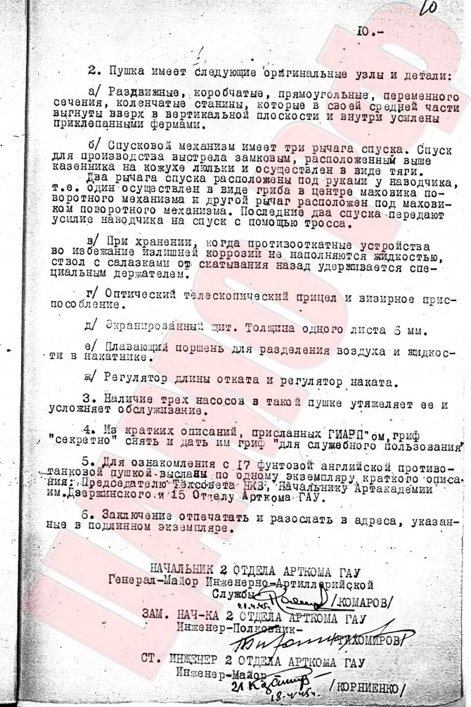 Согласно переписке, новые английские противотанковые пушки попали в поле зрения ГАУ КА в начале 1944 года. Уже 14 февраля была подготовлена программа испытаний, отправленная на полигон. Орудие под номером №1926 попало на испытания 6 апреля 1944 года.