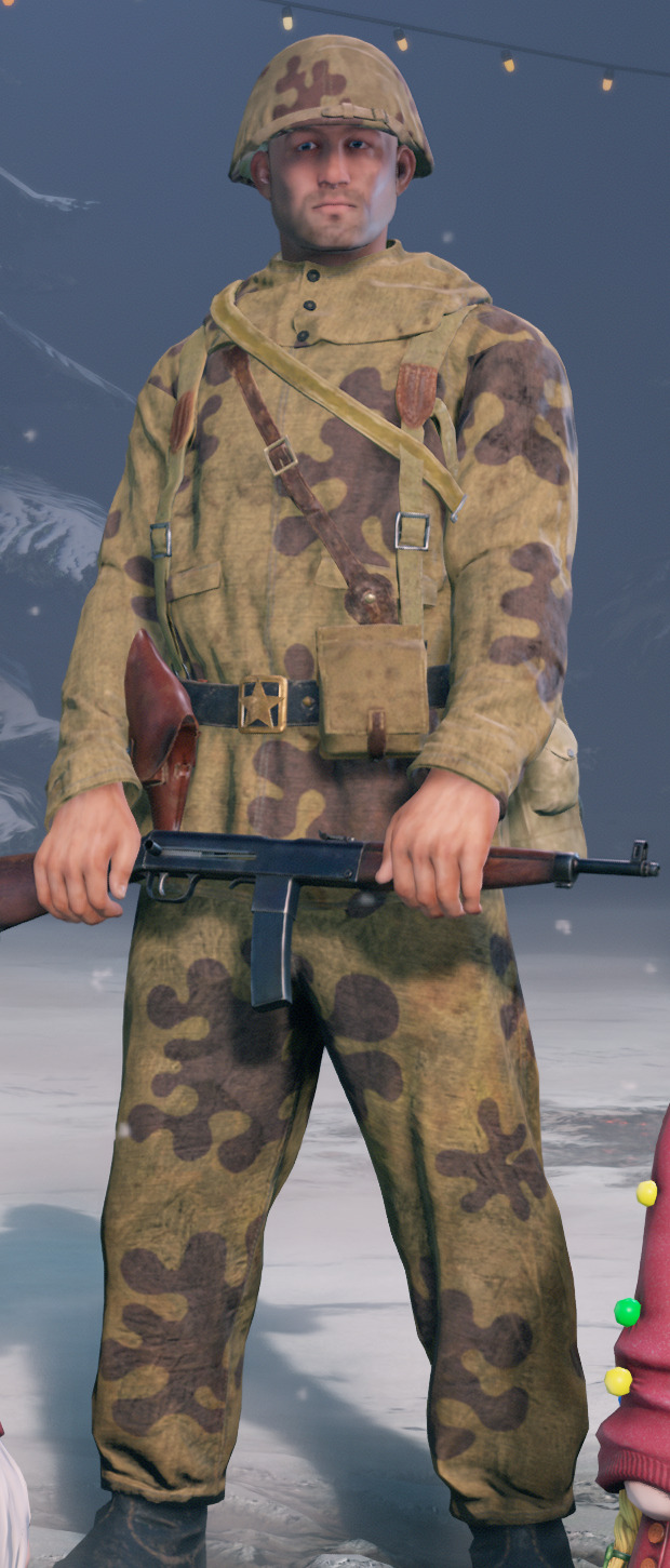 И так уж сложилось, что у ссср все камуфляжи, это или разного оттенка амеба с лиственницей или амеба перекрытая лиственницей в разных оттенках. Очень странно прятать этот скудный потенциал в трех отрядах не связанных с диверсионной работай (партизаны) или снайперским делом в игре.