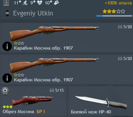 Заметил такую странность, если взять в слоты основного и дополнительного оружия любые мосинки, а в пистолетный слот обрез Мосина, то в бою боекомплект будет 5/15 в каждом слоте, хотя в ангаре показывает 5/20, 5/20 и 5/15. И при перезарядке одного оружия патроны расходуются из всех трех одновременно, то есть фактически на три вида оружия выдается ВСЕГО 30 патронов. Считаю, что это категорически неправильно. Если патроны однотипные то они должны суммироваться, т.е. по 5 в оружии и 20+20+15 в подсумках. Такая же ситуация у союзников, если к примеру снайперу дать спрингфилд с оптикой и без оптики. У немцев можно взять KAR98 и Carcano и тогда количество патронов будет соответствующее, а если два любых KAR98, тогда в два раза меньше.