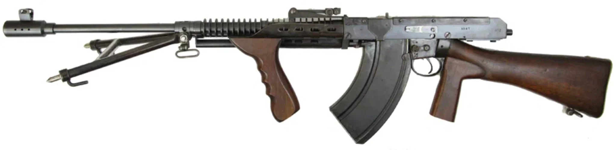 Добавили переднюю рукоять и деревянный приклад. Всё. По ТТХ тоже самое, что и первый будет