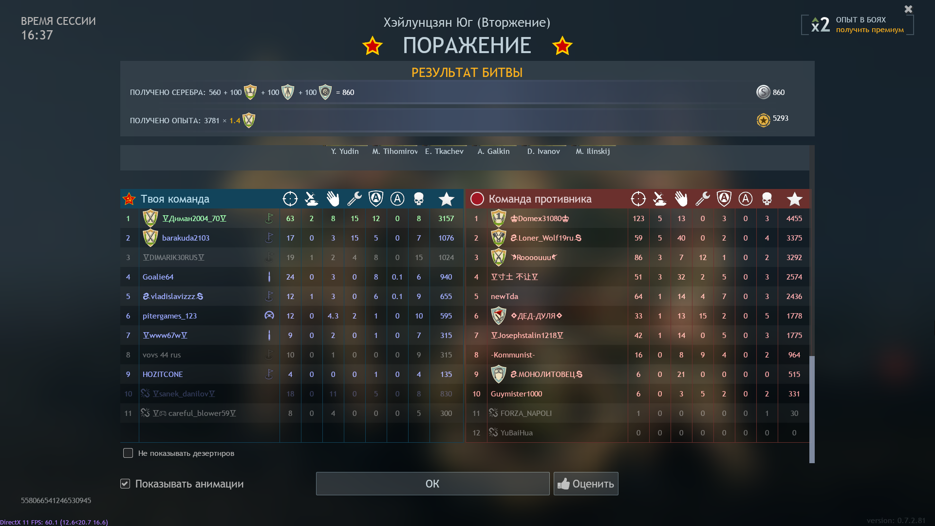 БР оружия, степень прокачки отрядов.