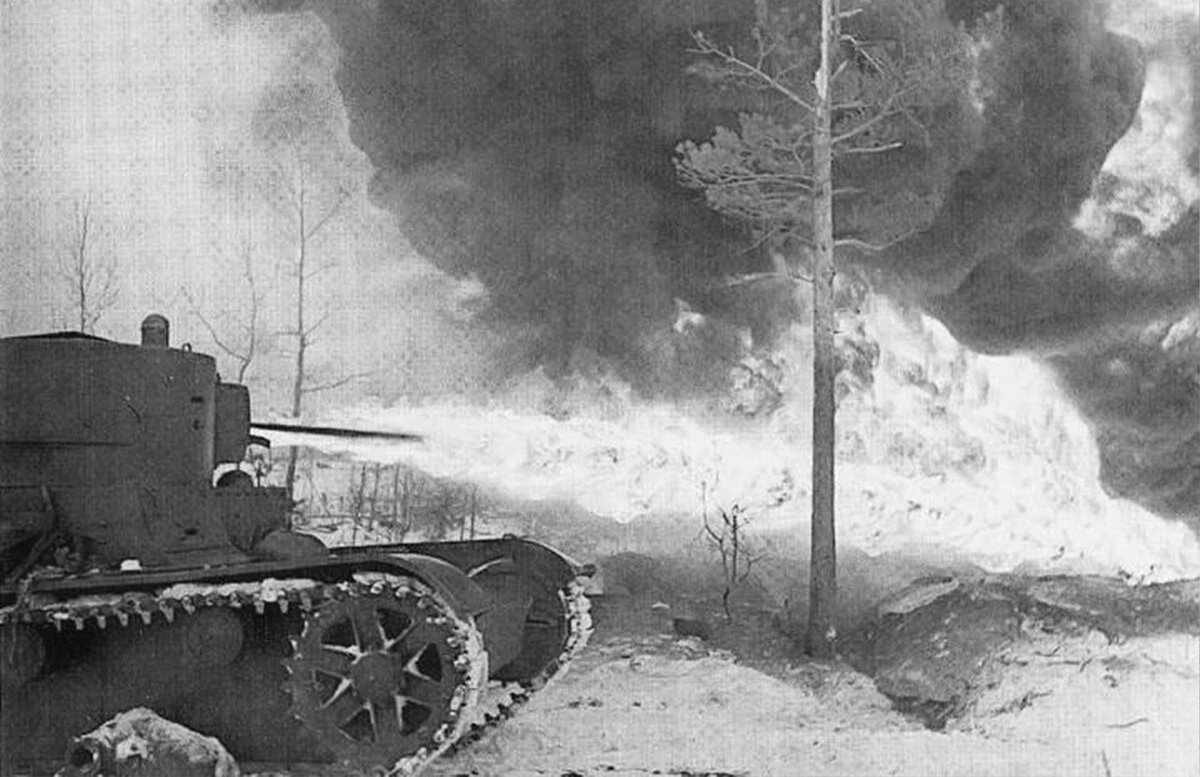 Огнемётные танки, в том числе и ХТ-130 на фото, принимали активное участие в советско-финской войне. Боевой опыт показал, что они отлично справляются с “выкуриванием” финнов из долговременных бетонных укреплений, но очень уязвимы для любых противотанковых средств;
