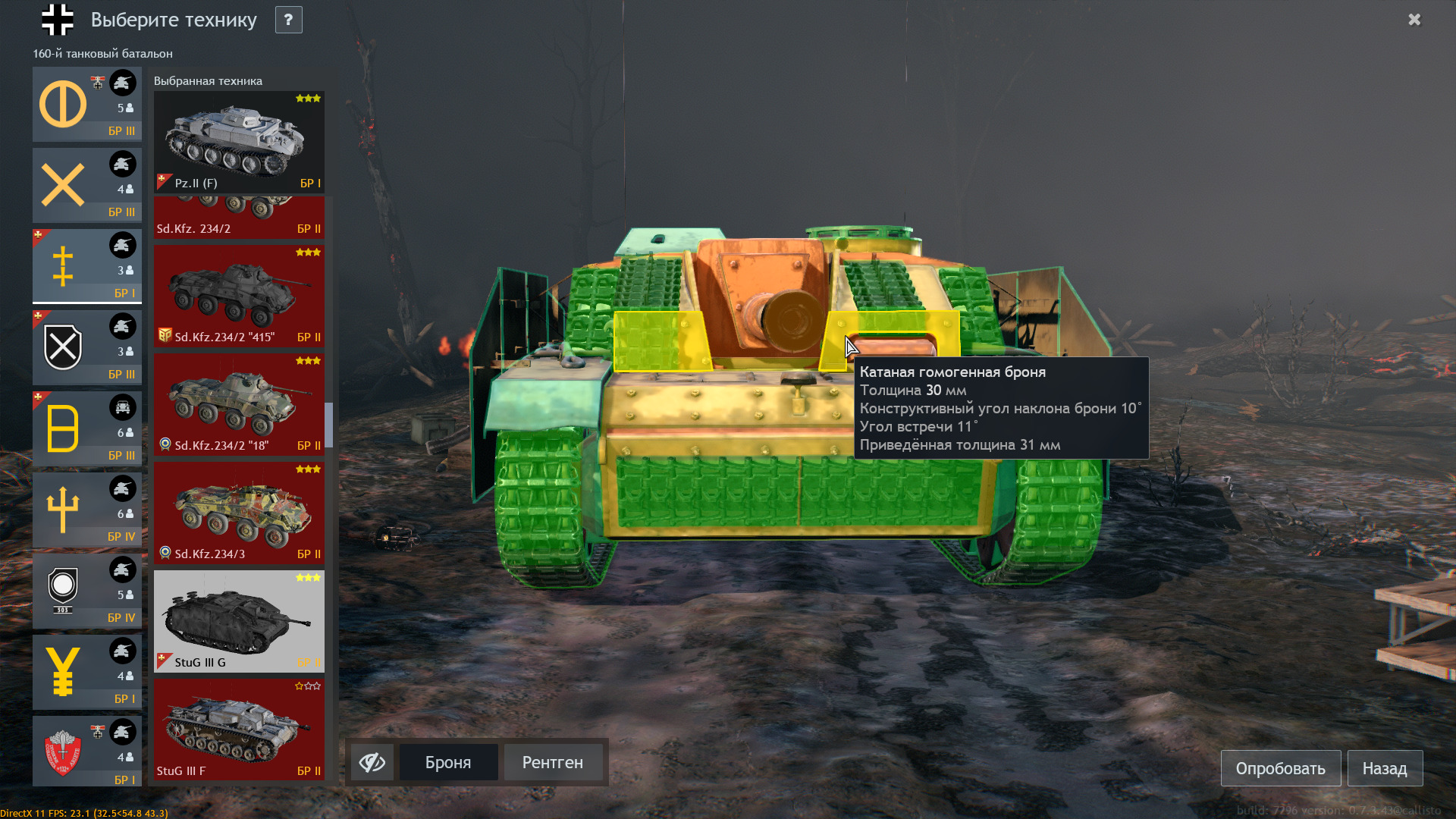Лобовая броня 80мм(50+30 и кое где +20мм траки) уязвимые зоны 50мм(и ком башня 30мм) но они маленькие как и сам штуг