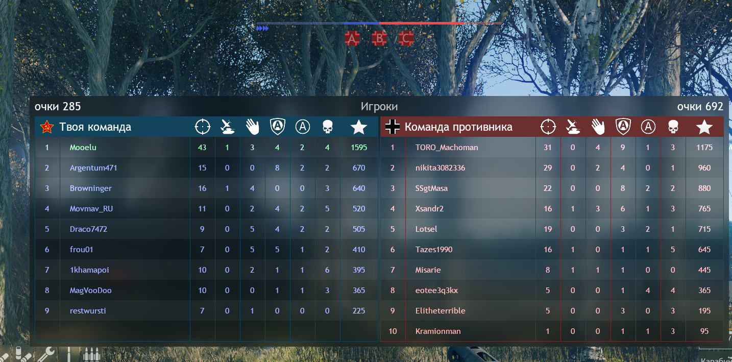 Когда я что то держу, как правило остальные две проиграны. А если я и одной взять не могу, потому что спавны на разном удалении до точки, то происходит как на скрине - 0 точек у команды и куча ботов и недоигроков. И это между прочим московский Прайм тайм. Такое впечатление что за советов никто толком не играет:(