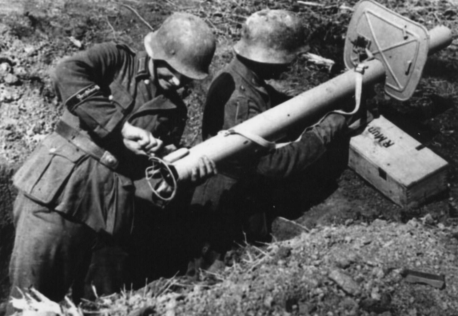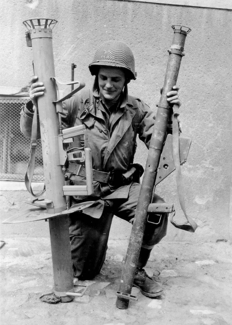 Не был добавлен в игру для американцев. Зато в истории его активно захватывали и применяли. Американские солдаты с немецким 88-мм ручным противотанковым гранатометом «Панцершрек» («Panzerschreck» R.Pz.B.54/1 ). Гранатомет держит сержант Шелтон (R. D. Shelton).