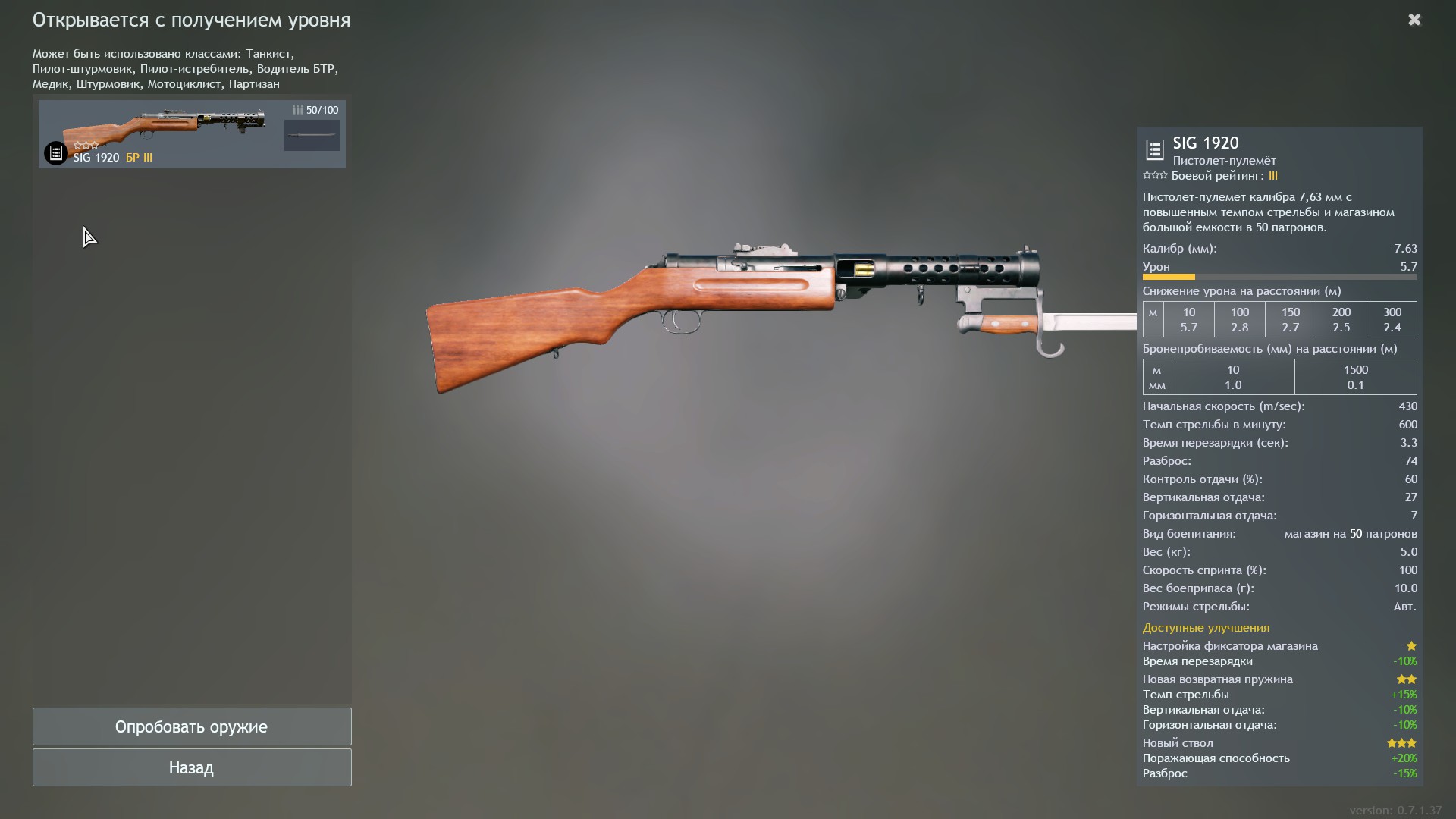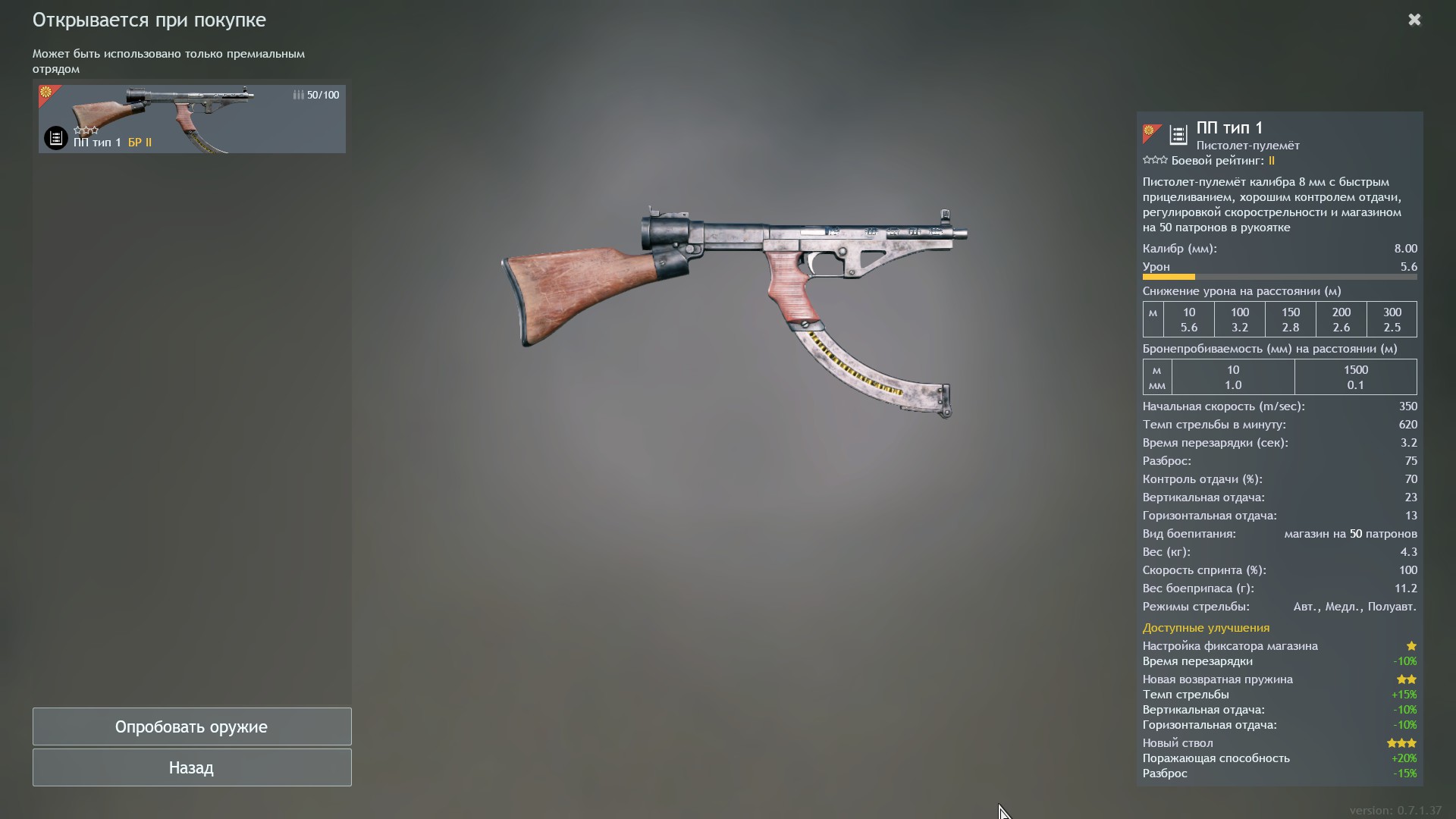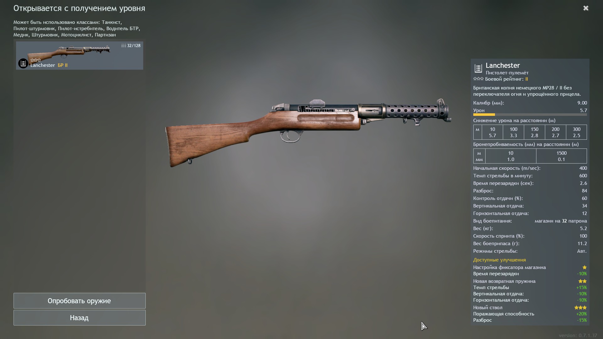 Итак смотрим: 600 (690) выстр/мин при магазине в 50 патронов и он на 3 БРе. Похожими характеристиками обладает SIG 1920, тоже 600 (690) выстр/мин при магазине в 50 патронов и он так-же на 3 БРе. И тут в донате у Японии лежит ПП Тип 1 с его 620 (???) выстрелов минуту при магазине 50 патронов и он на 2 БРе. Единственное, в чем Lanchester 50 лучше того-же ПП Тип 1 только в скорости перезарядки на 0.6 сек. В итоге тут два выхода.