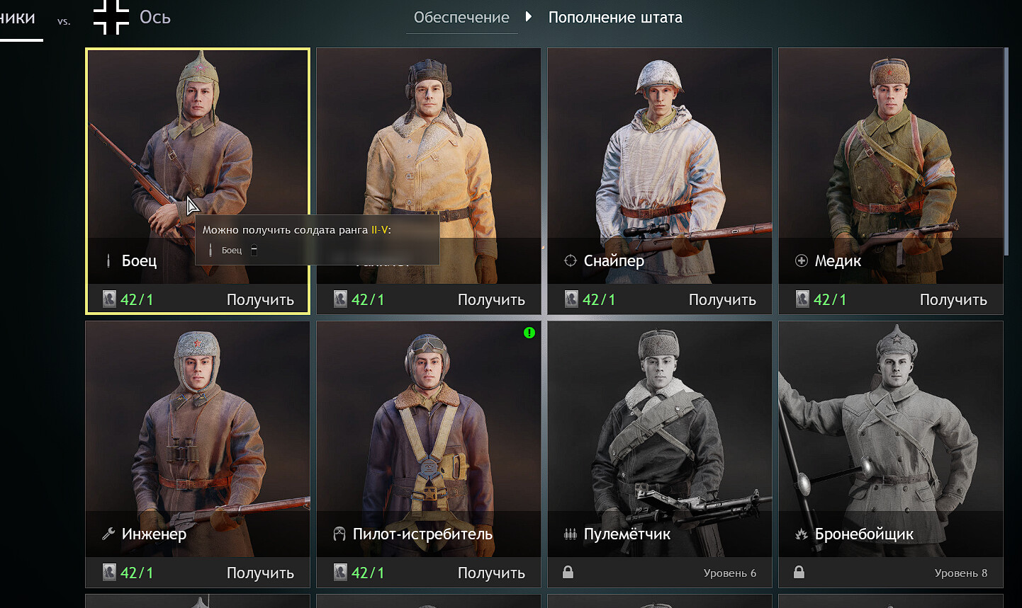 А штурмовиков-то и нет. Медики-I есть. Радисты-I есть, пулемётчики-I, миномётчики-I платные. Штурмовиков нашёл только на 16 уровне, II типа. Купить за серебро некого. Медика воткнуть на его место нельзя.
