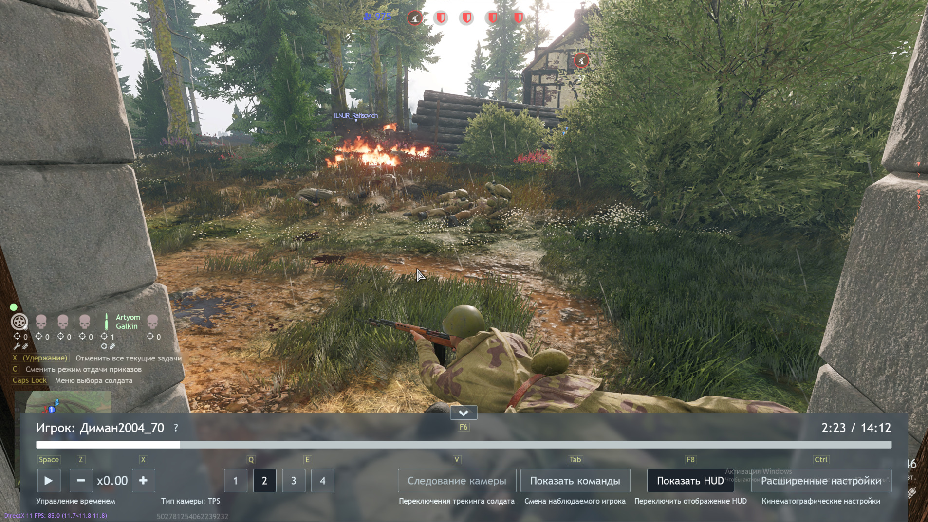 К этому добавляются попытки использовать индивидуальные приказы, но ты их раздаешь медленно и не понимаешь, как быстро снять. Поэтому у тебя всегда боты либо стоят под пулями и артой, либо бегают за тобой и мрут.