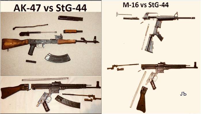 В конце ВМВ США обзавелись приличным арсеналом трофейного оружия рейха, многие образцы, даже, подозрительно похожи на более современные разработки США, чего стоит только линейка штурмовых винтовок кольта начиная с AR 10 и вплоть до современных высокомодульных стрелковых комплексов: