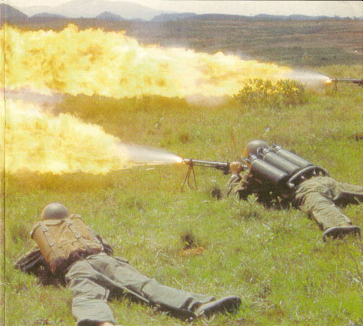 Зольдат под огнесмесью, фото в цвете.