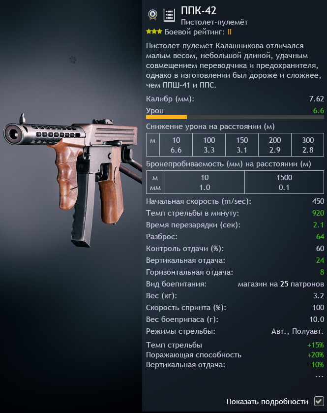 1.5 урона на 100м. Это шутка такая? И за что? Ведь длина ствола у него 250мм, ровно такая же, как у ППС-42/43