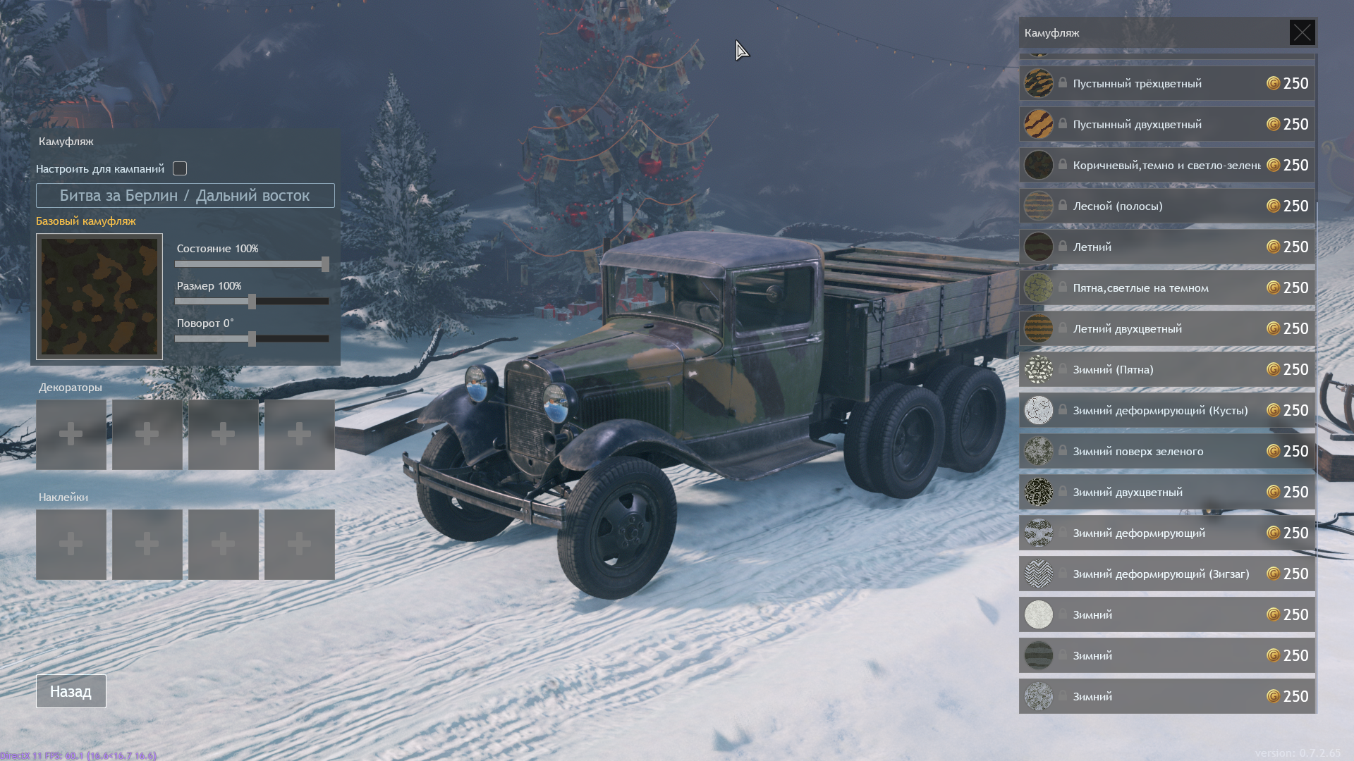 Здравствуйте. На данном грузовике у меня был куплен зеленый камуфляж, без пятен (просто зелёный камуфляж) за 250 золота. Вопрос, где он? Если удалили, делайте компенсацию.