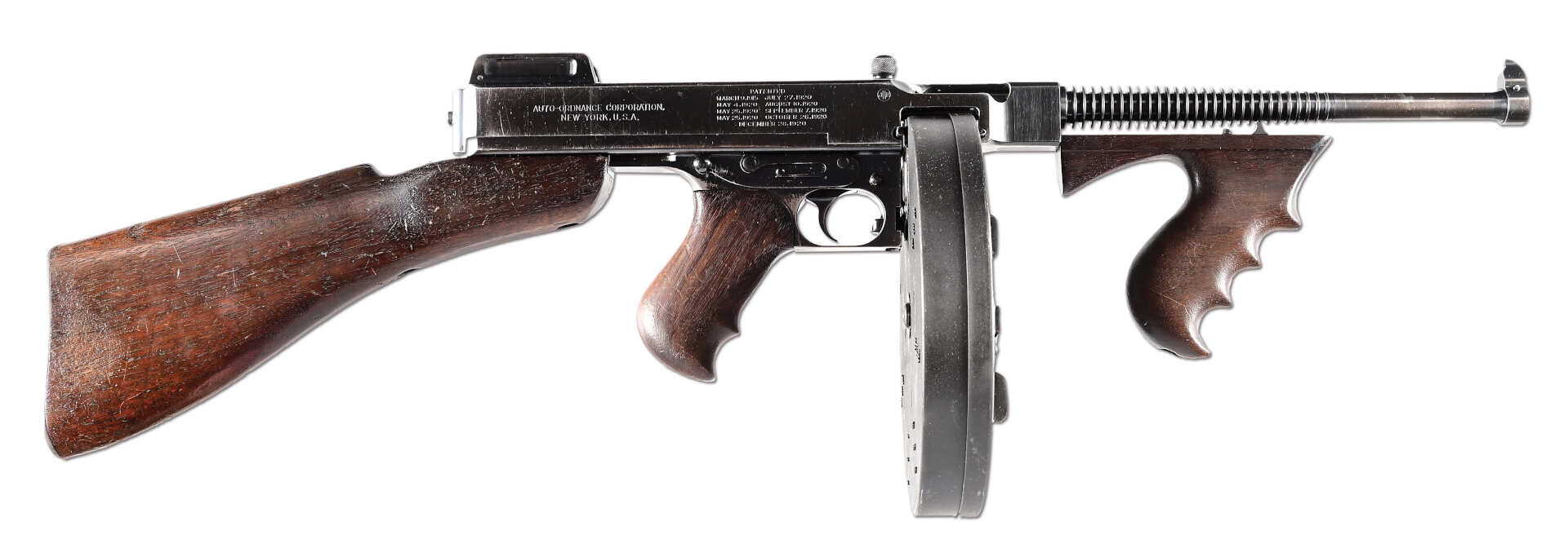 Thompson M1921A производства Colt с барабанным магазином на 100 патронов.