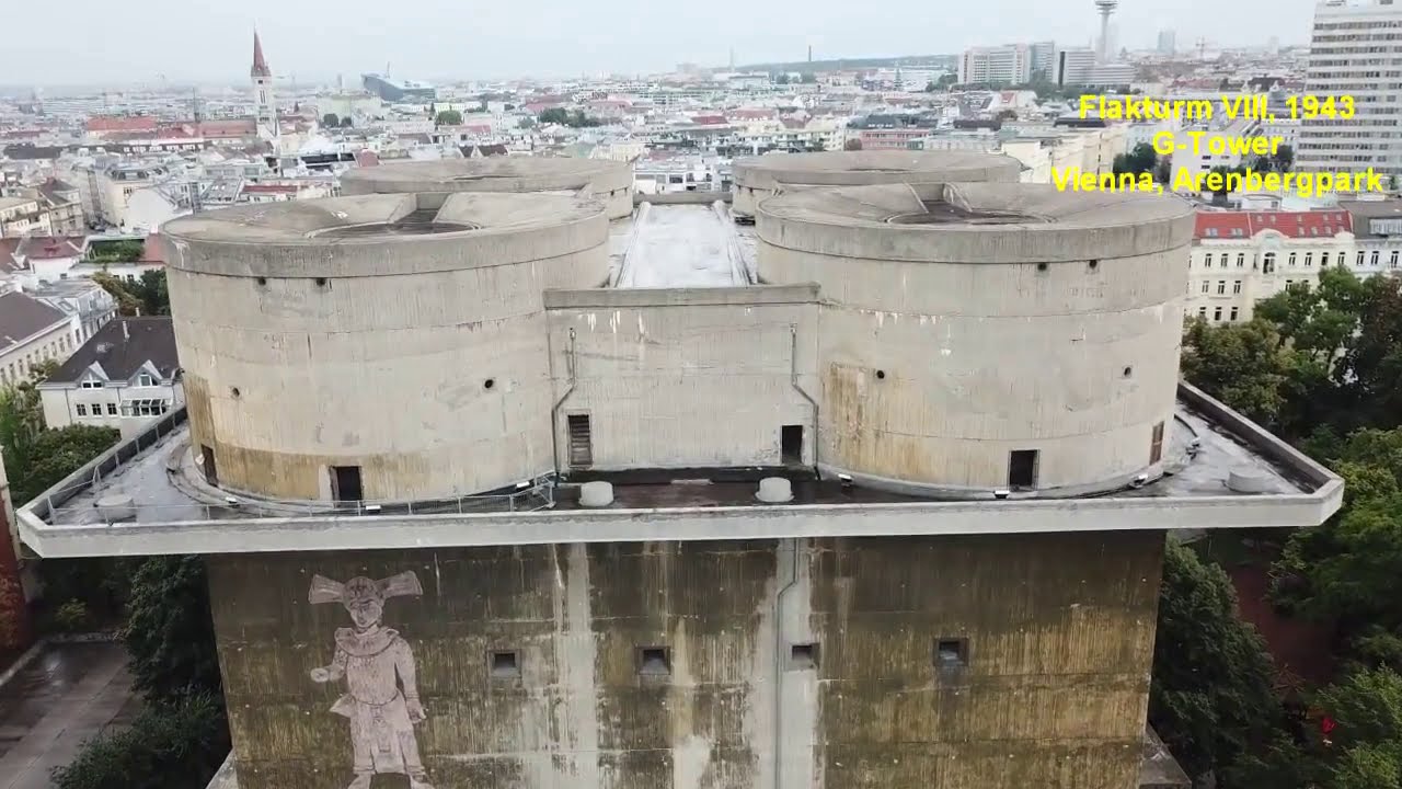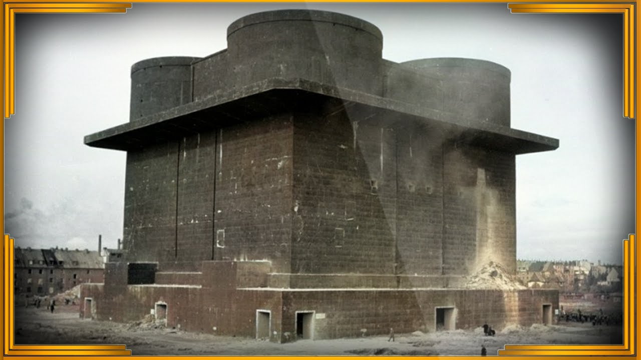 Чудовищное здание времен второй мировой войны. Это второе поколение гитлеровской артиллерийской башни и восьмой по счету. Более подробное описание о этих устрашающих сооружениях которые до сих пор “украшают”