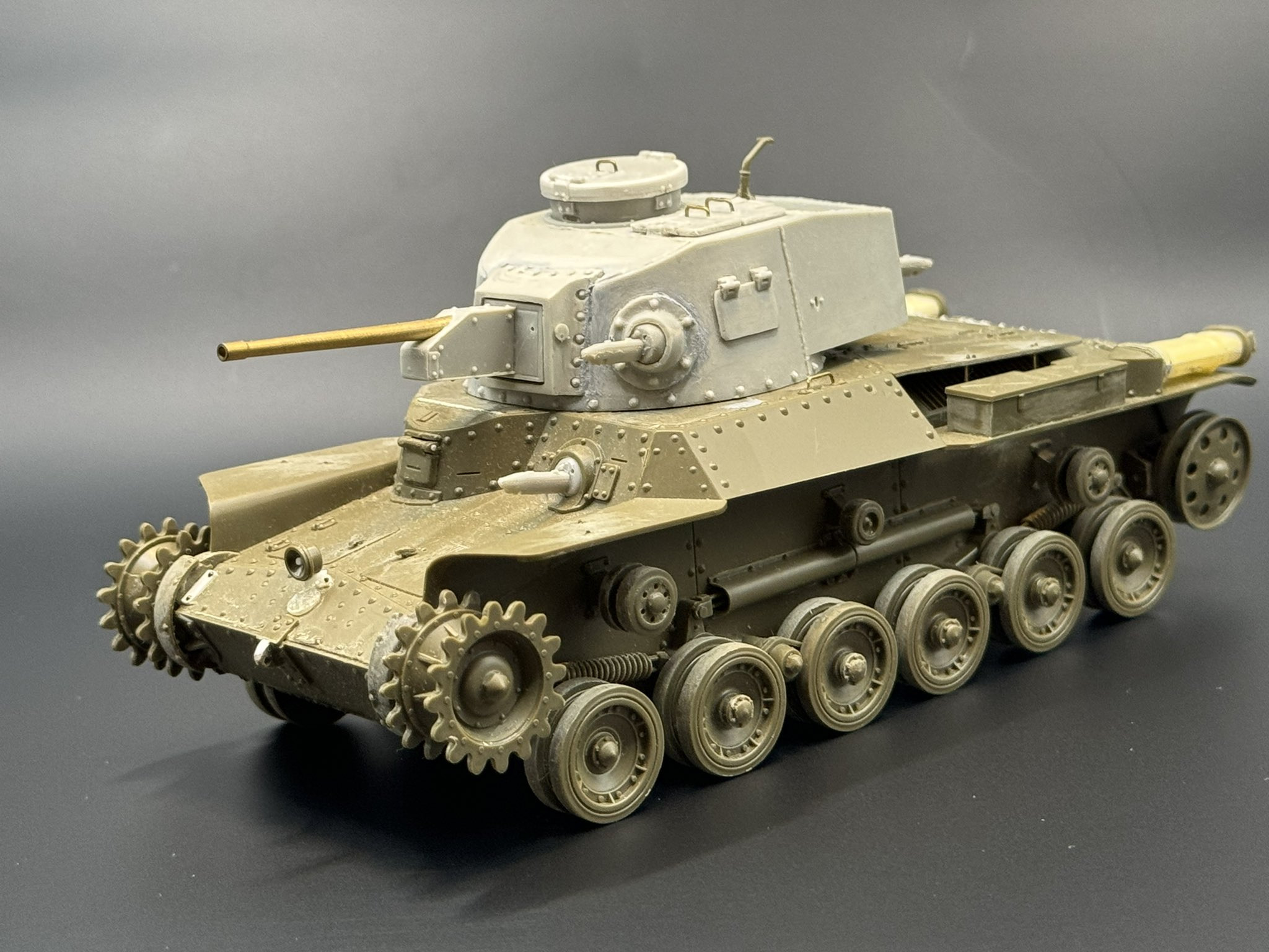 Инфы на ру сегменте по данному танку мало, да и не особо на анг. Данный танк разрабатывался после не особо удачных боев на Халкин-Голе японское командование увидела, что их 57-мм пушки против советских танков на больших расстояниях мало что могли сделать. Поэтому под конец 1930-х готов командование потребовало новый танк рассчитанный на повышенную эффективность против танков. Новый танк должен был заменить уже откровенно устаревающий “Тип 89”, поэтому унаследовал от него некоторые технические решения, в первую очередь в МТО. Однако, постепенно и ходовая часть и корпус машины были переработаны капитально а особенно досталось башне и вооружению машины. Ходовая часть состояла (применительно к каждому борту) из двух балансирных тележек и одного опорного катка на независимой подвеске (впоследствии добавили еще один каток, сзади как у танка Тип 97 ), в МТО угнездился дизель воздушного охлаждения мощностью в 160л.с., а резко увеличенная по размеру башня приняла в себя мощную 47-мм противотанковую пушку и независимо управляемый пулемет в левой скуле башни (как я понимаю, у командира). Единственной чертой, которая осталась от исходной модели оказался “хвост”, подобный тем, что появлися еще на Renault FT-17, который должен был облегчить преодоление окопов. Однако, судя по фотографии не очень это хвост помог. Как итог из-за дороговизны и малых отличиях по эффективности танк дальше четырех прототипов не был произведён.