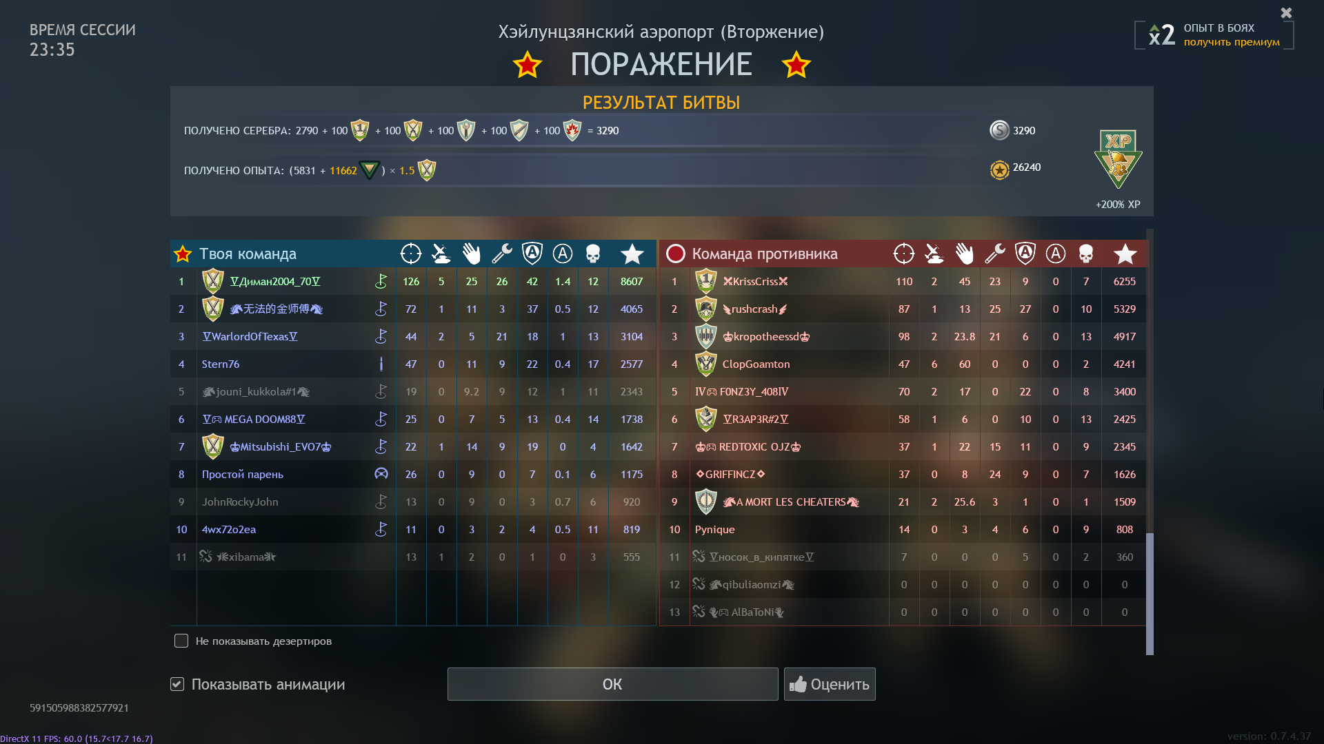 Был ещё один бой-поражение с бустером, но я его видимо не заскринил. На той же карте, что и бустер на 200.