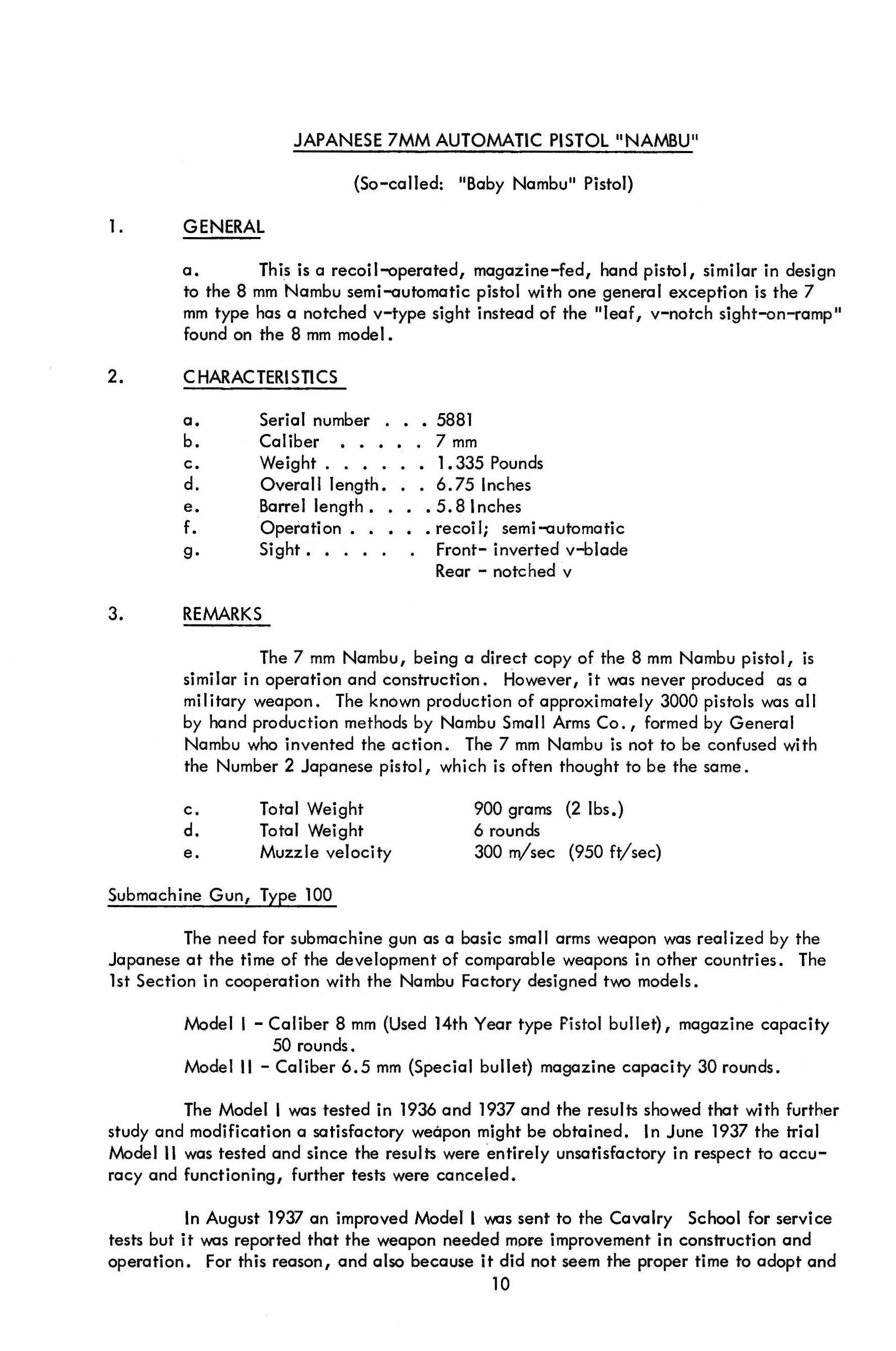 «Необходимость в пистолете-пулемёте как в базовом стрелковом оружии была осознана японцами в то время, когда в других странах разрабатывалось сравнимое оружие. 1-я секция в сотрудничестве с Nambu Factory разработала две модели: