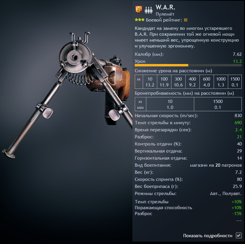 не знаю как вы, а я считаю, что это лучший лёгкий пулемёт 3го БР а ИГРЕ!