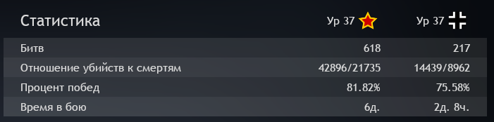 Было и даже хуже. Сейчас советы в Берлине унижены, но пока я докачивал немцев регулярно встречал жёсткое сопротивление, порой колумнисты выносили фрицев только в путь. Когда же я начинал качать РККА в Берлине (а это моя первая вкачанная сторона), мемцы вообще ничего не могли противопоставить. Средняя катка длилась минут 6-7. Когда-то тогда ещё ввели показ винрейта в профиле и у меня он был что-то типа 95%. Хоть сколько-нибудь человекоподобные игроки за Германию появлялись после патчей и через недельку снова уходили в Нормандию пинать ботов.