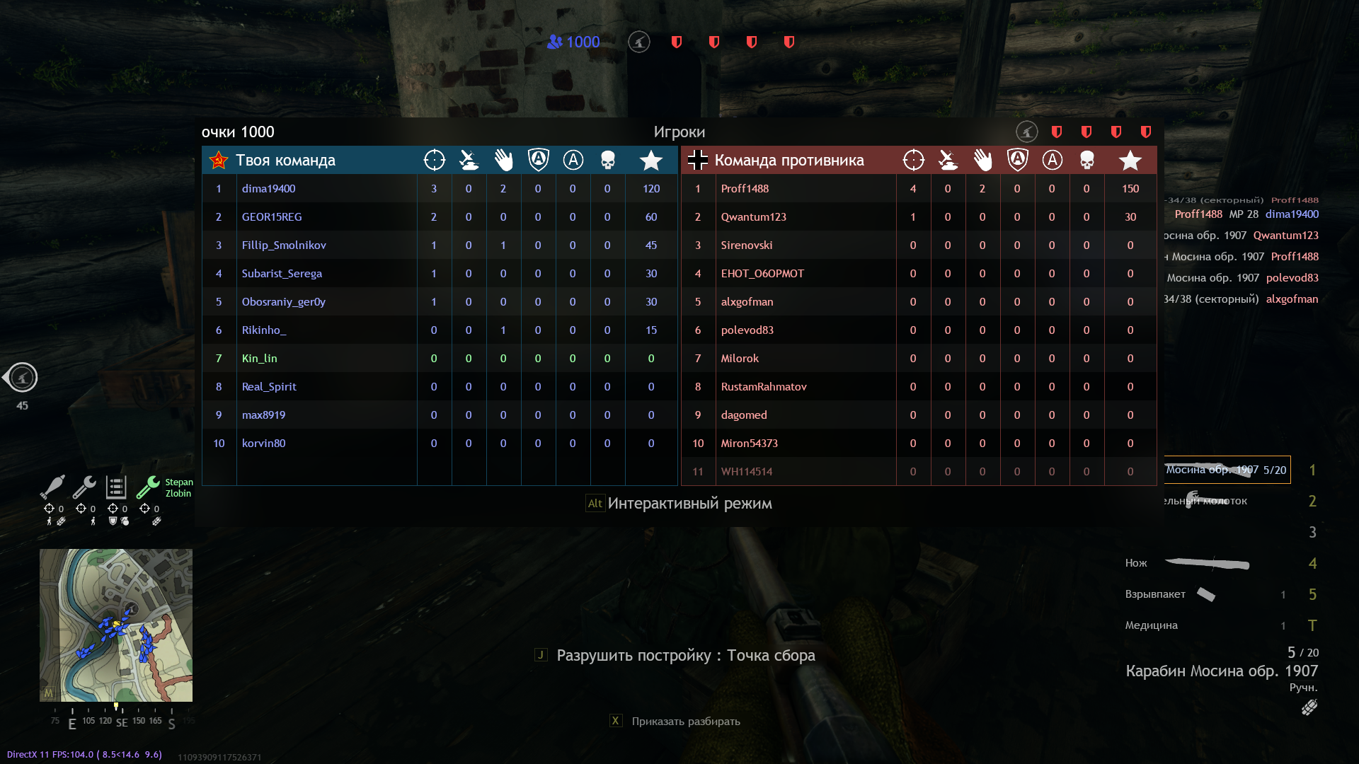 Результаты не заскринил, но я на первом месте со счётов отрыве, но не смотря на это, но каких-либо бонусов получено не было за респы и пополнения припасов.