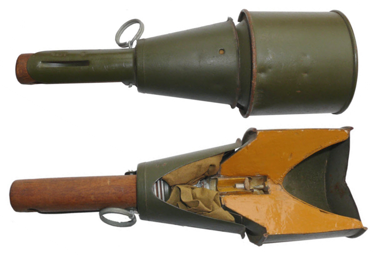 Ручная противотанковая магнитная мина Hafthohlladung. Кумулятивное действие, минимальная дистанция (закрепление на борту бронетехники). Действие на пехоту противника - никакого.