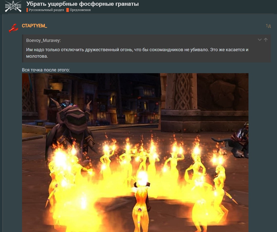 Чувак застраивает респы союзников + возможно свои колючей проволокой, кидает на них фосфорные гранаты и молотов. Причём некоторые говорят, что видели его раньше - мб забанить его уже?