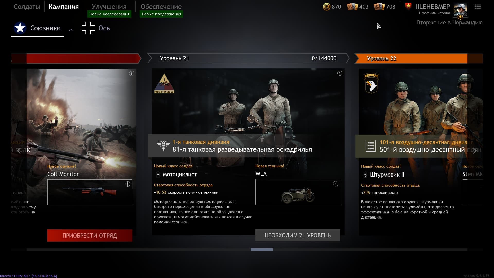 А поскольку первые уровни с оружием без отряда я выделил под медиков, то предлагаю поставить отряды мотоциклистов на следующие уровни: