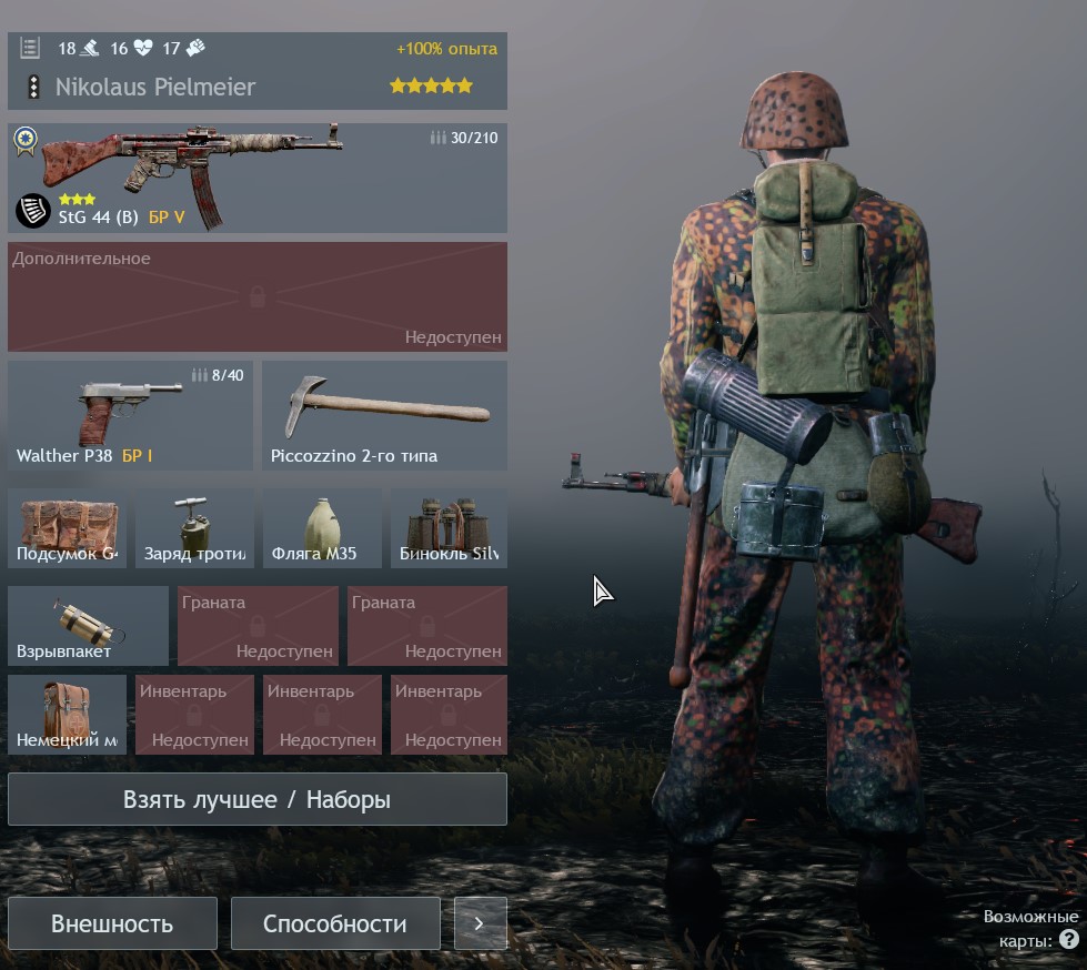 Вообще, на стоковых нарядах отображаются обвесы, которые ты выдал солдату (сумки, рюкзаки). А на покупных - нет. Я согласен, что было бы здорово, если бы на внешний вид влияло то, что ты выдал бойцу (лопата, бинокль, фляжка только если они выданы), но как вы понимаете, кастомизация это очень сложно у нас… Возможно, однажды.