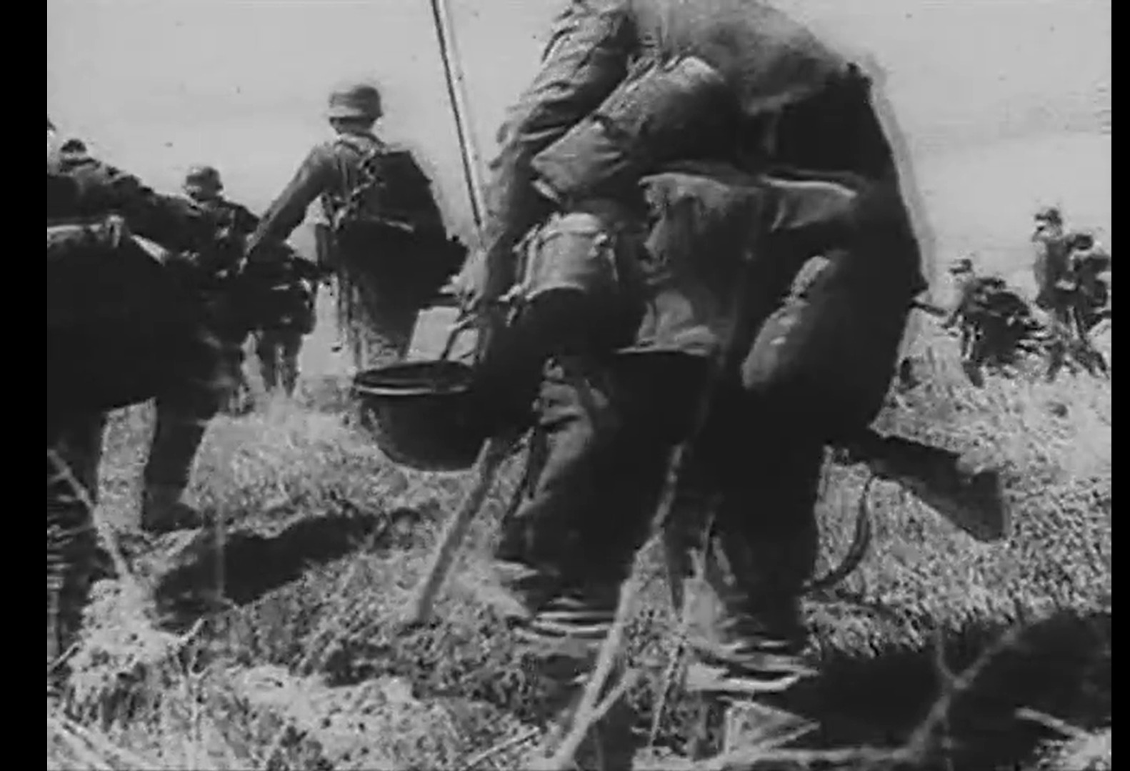 И на фото выше подавляющее большинство солдат без рюкзаков и котелков, а именно с таким или подобным снаряжением.