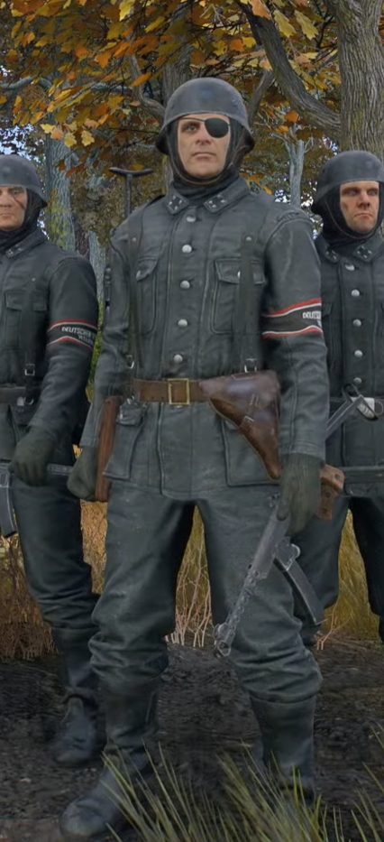 Кстати, из такого, хорошо б еще настраиваемые звания. А то прикиньте, выбегает на вас отряд штурмбаннфюреров(по петлицам. А если быть точным, то каждый из них по два штурмбаннфюрера ограбил, чтоб с обеих сторон петлицы с четырьмя звездочками были) СС с повязками фольксштурма