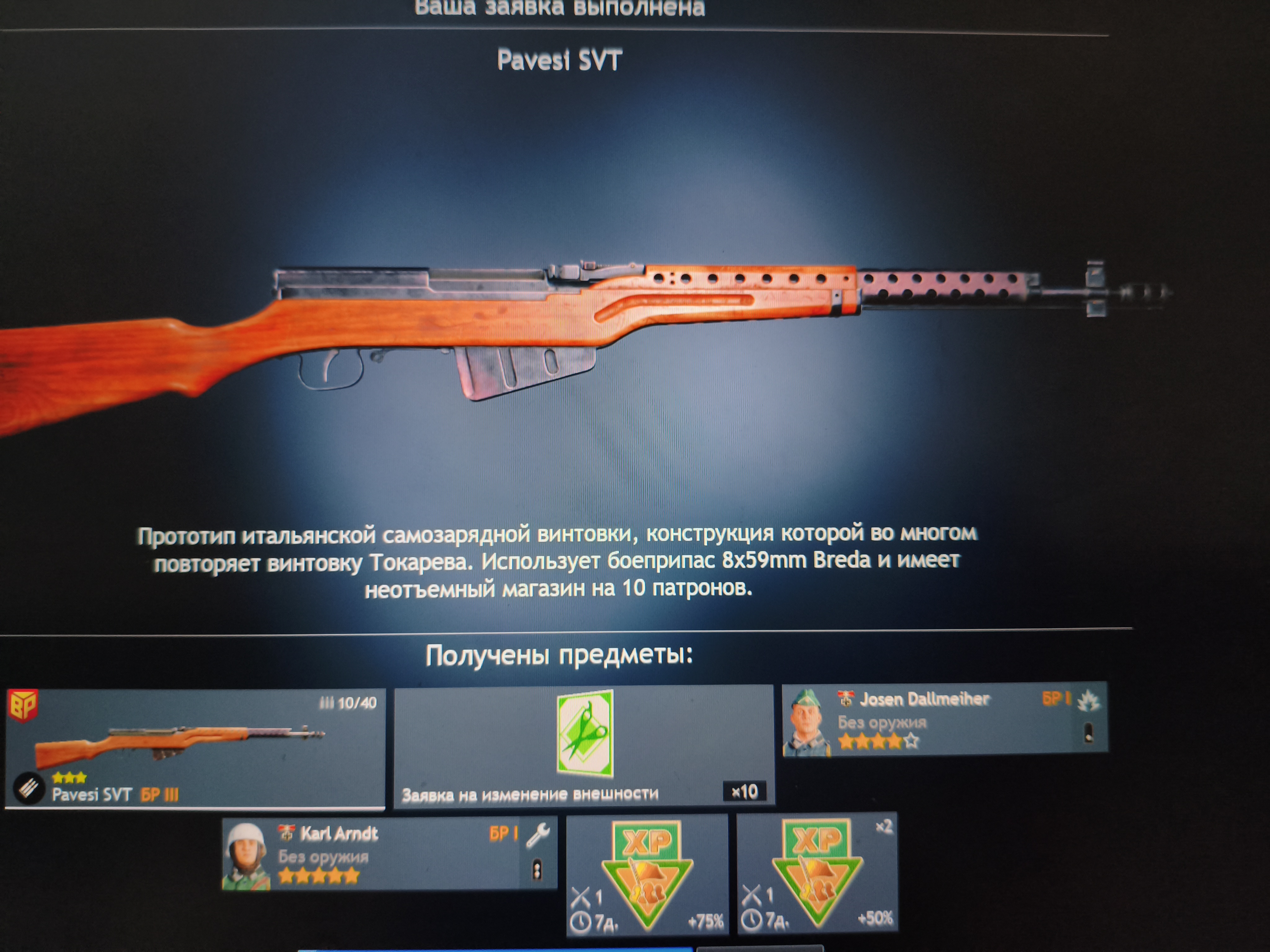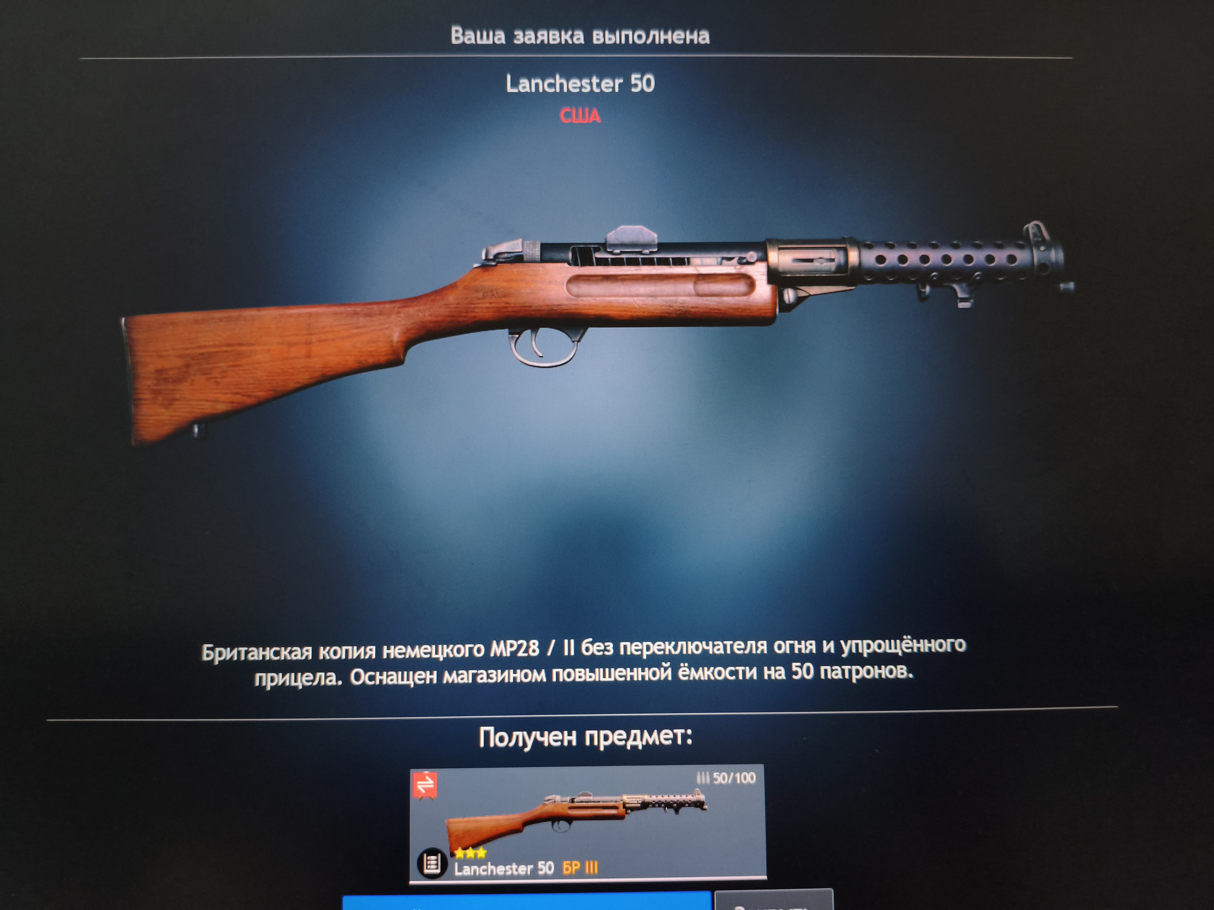 В прошлый раз я открыл на меньшую сумму и мне выпал пулемёт Горова, советский бронебойщик, сабля американская, ещё что-то вроде.