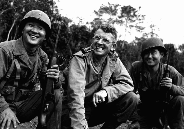 Почему в армии Соединённых Штатов Америки встречаются модельки азиатов? Вы знаете, что в те времена сделали бы с военнослужащим с азиатской внешностью в армии Соединённых Штатов Америки? Вам что-нибудь говорит слово “сегрегация”? Ну и я предлагаю удалить это недоразумение, ну, ибо камон, вы чё, на рофлах?