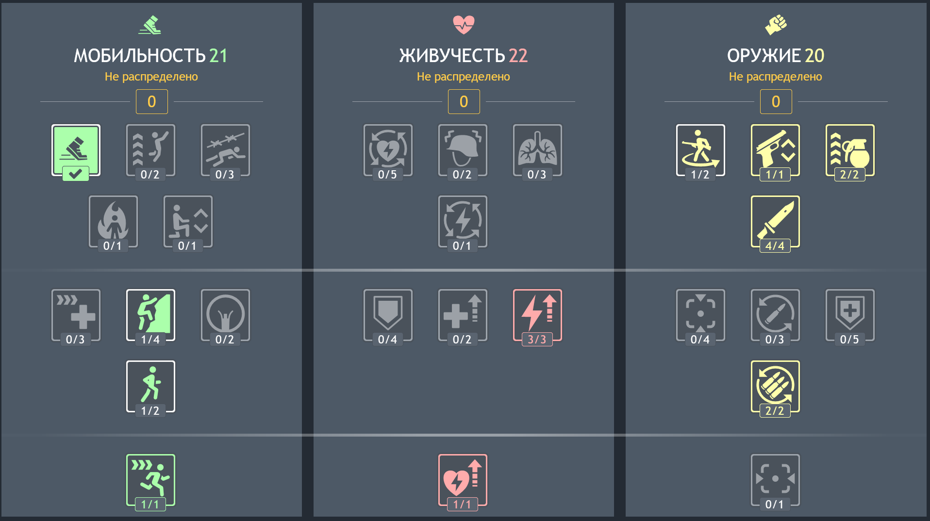 Улучшать бег, который и без того космический, не стоит, можно дать пару очков в другие графы, но я не знаю, что реально это даст. Живучесть есть, обращение с оружием почти не нужно ему.